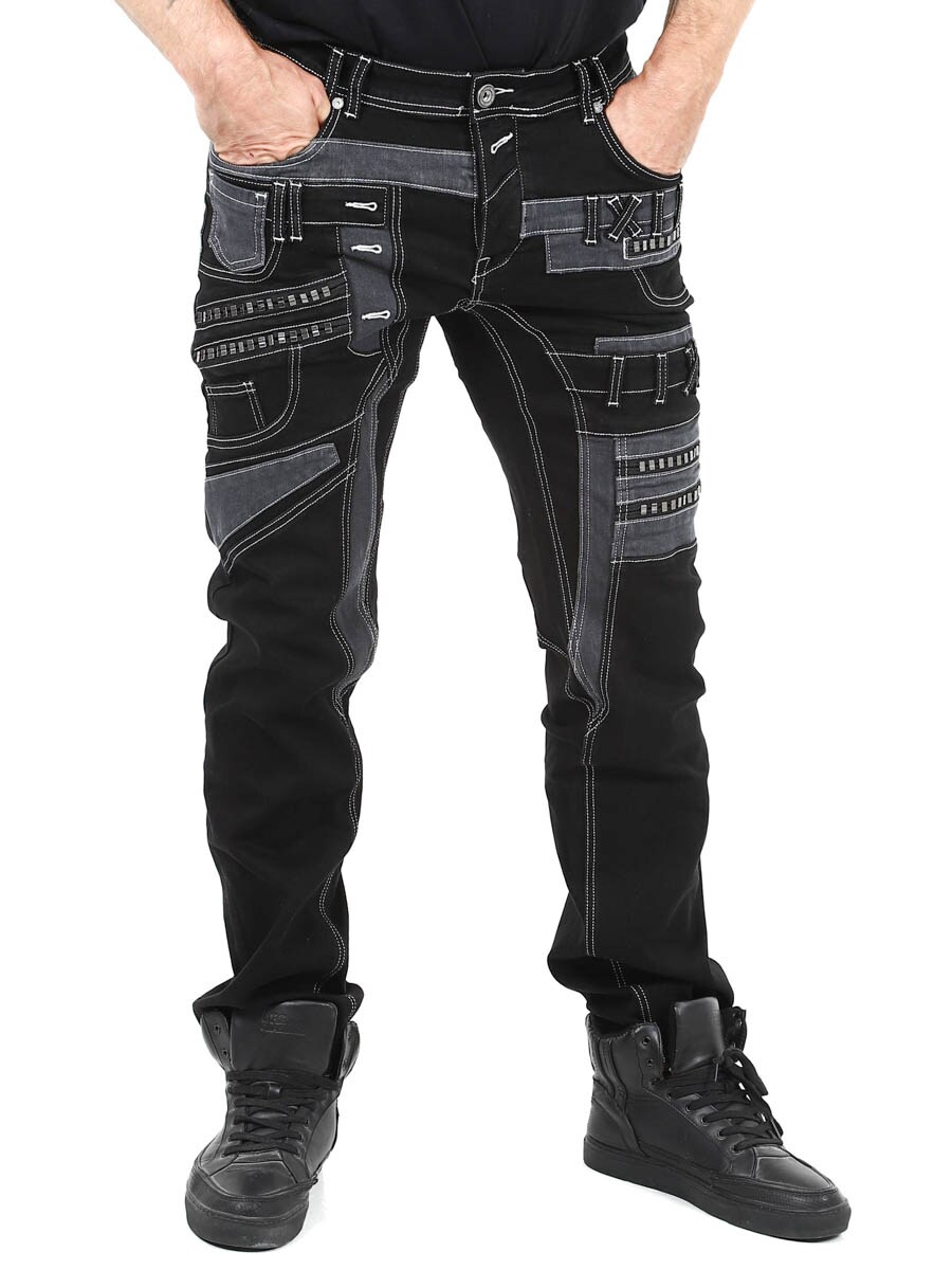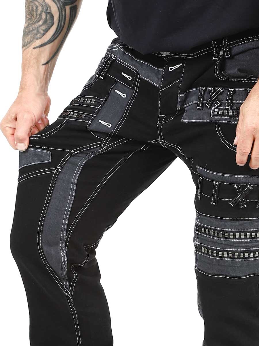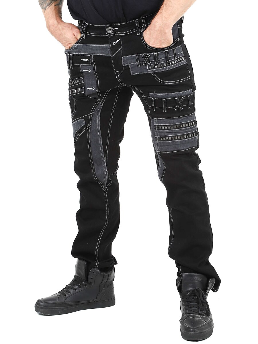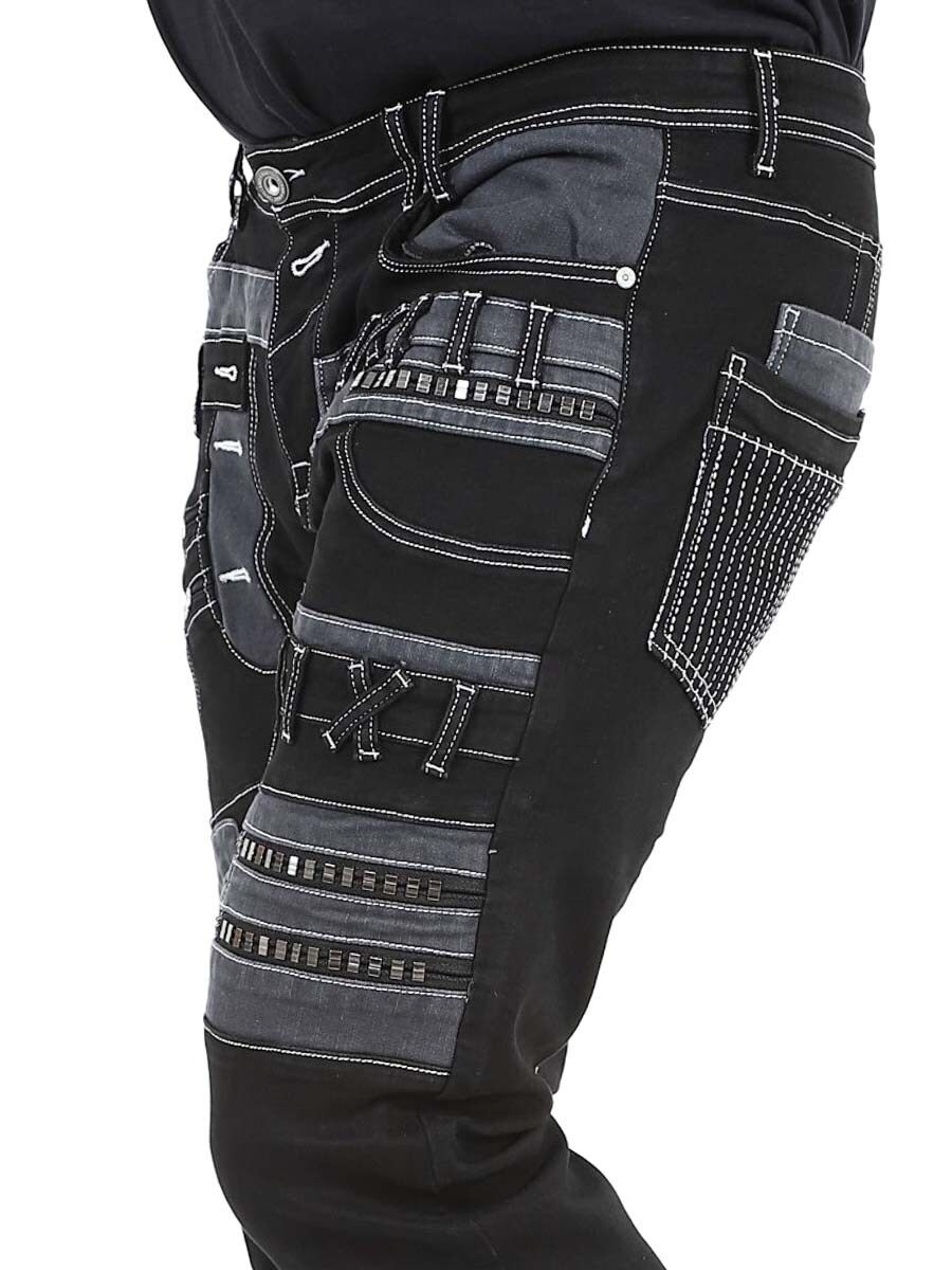 Nadaj swojej stylizacji mroczny charakter dzięki tym wyjątkowym czarnym dżinsom z elastanu. Zaprojektowane z zamkami błyskawicznymi, przeszyciami i wstawkami, które nadają im odważny wygląd. Idealne dla osób, które chcą nosić coś niezwykłego.