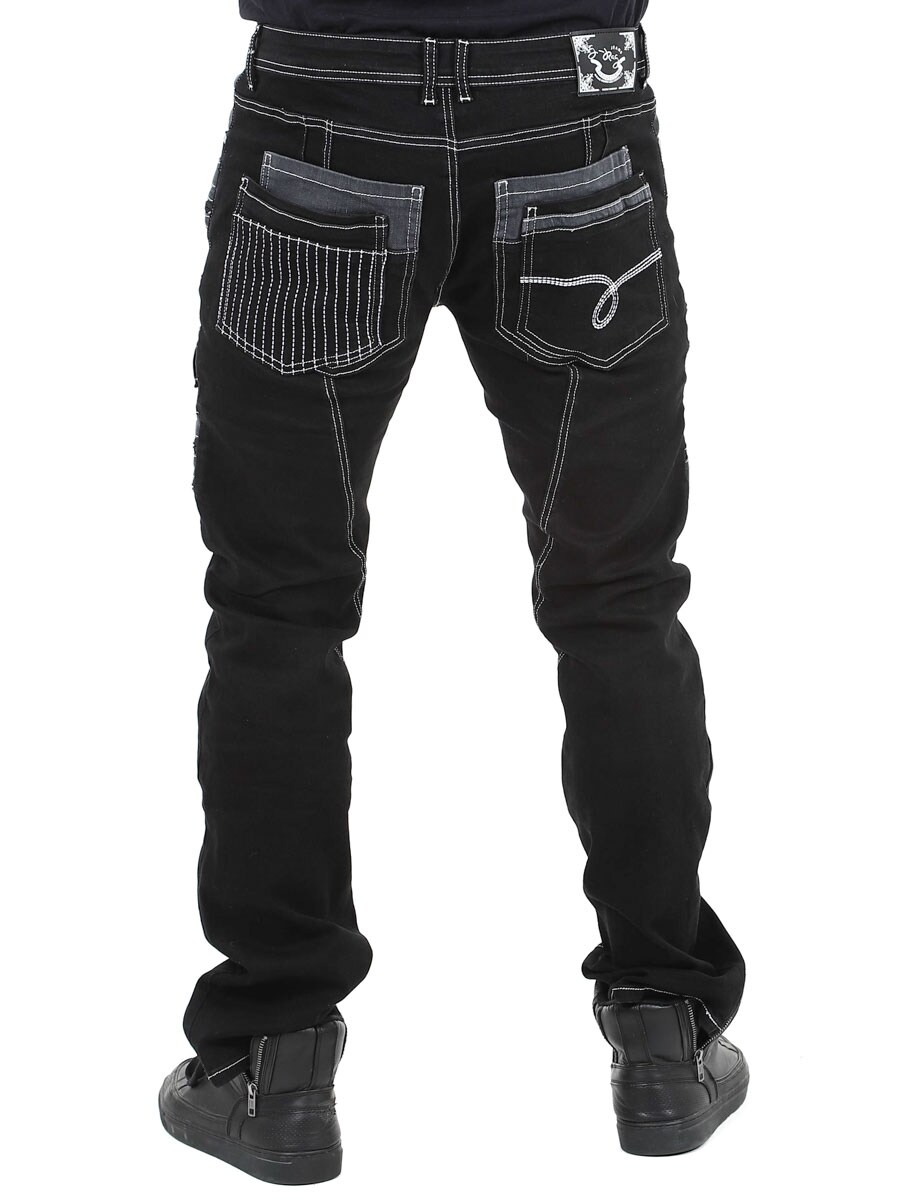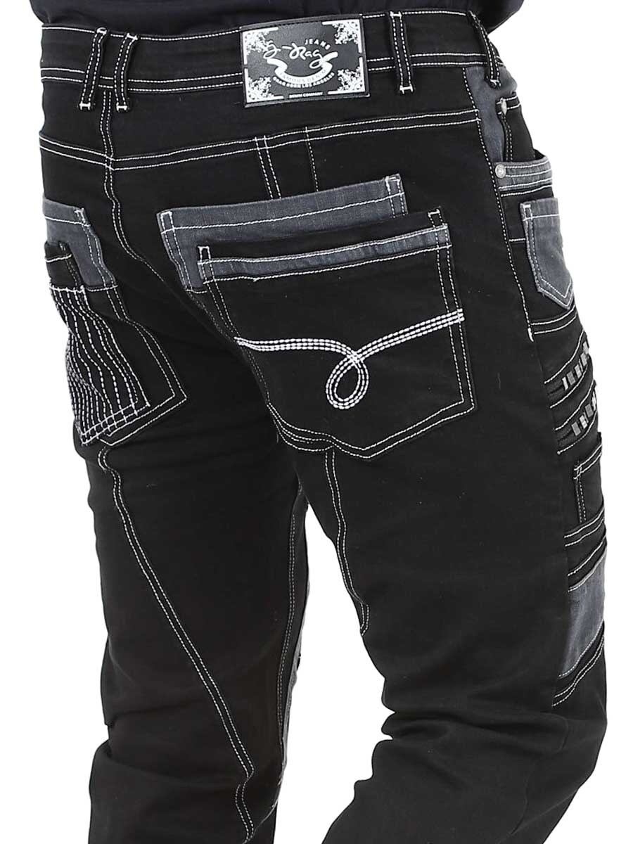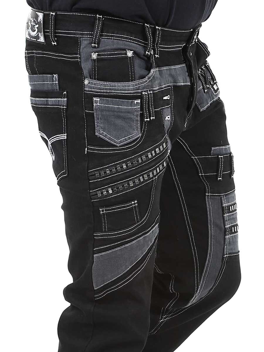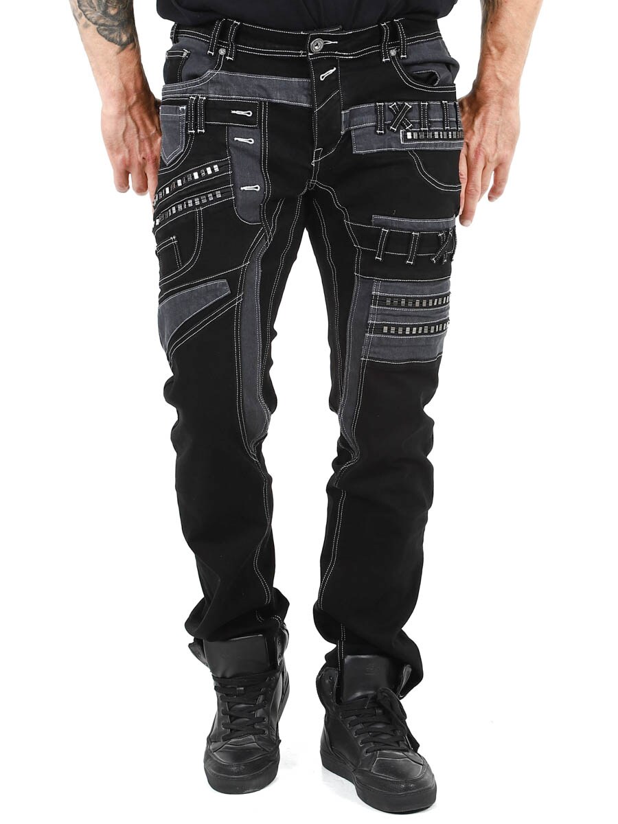 Nadaj swojej stylizacji mroczny charakter dzięki tym wyjątkowym czarnym dżinsom z elastanu. Zaprojektowane z zamkami błyskawicznymi, przeszyciami i wstawkami, które nadają im odważny wygląd. Idealne dla osób, które chcą nosić coś niezwykłego.