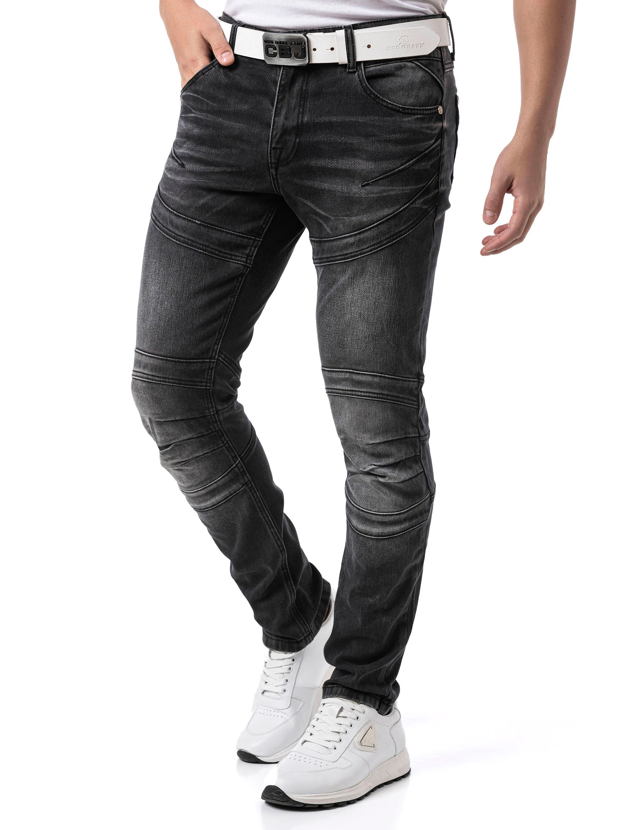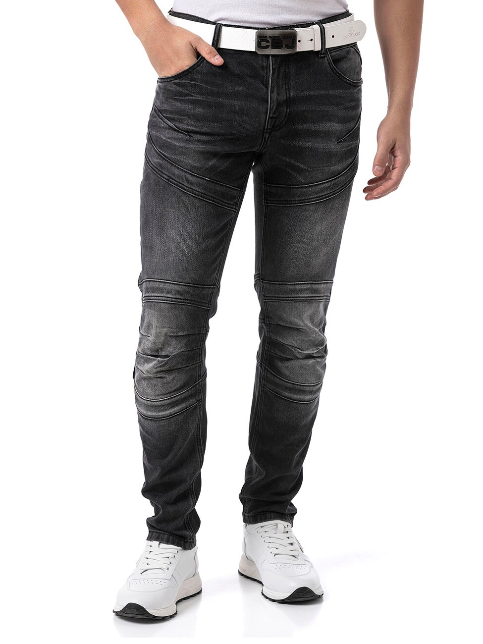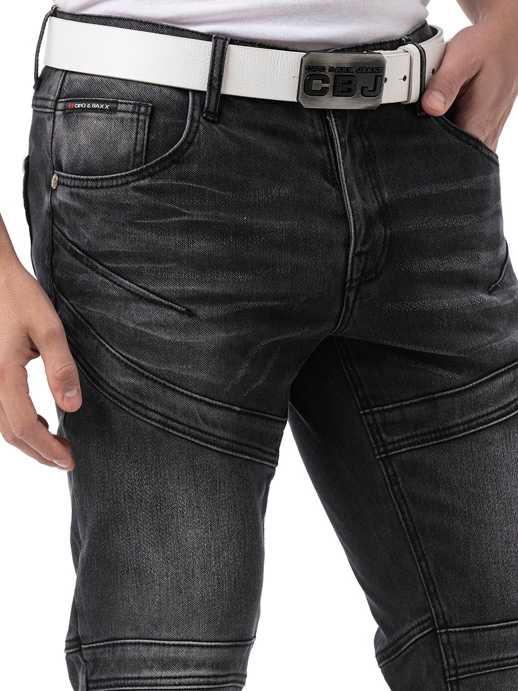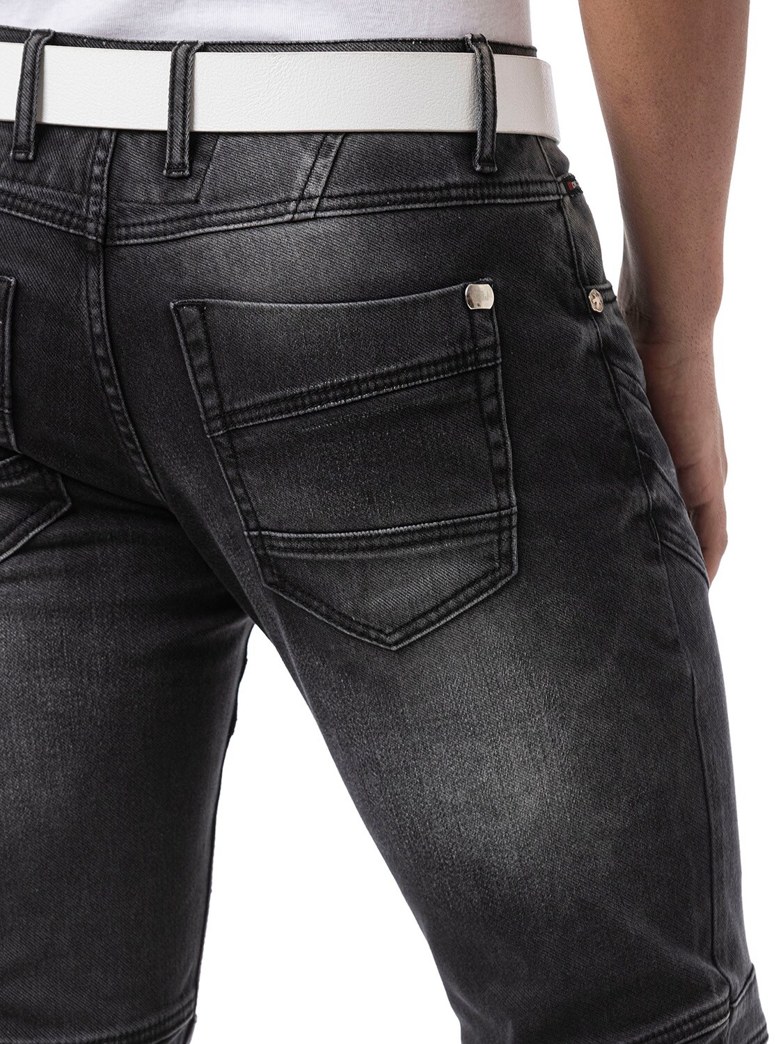 Sprane dżinsy z grubymi szwami, które podkreślają design. Wykonane z miękkiego i elastycznego denimu, który dopasowuje się do ciała, zapewniając idealne dopasowanie bez ograniczania swobody ruchów. Mają pięć kieszeni i rozporek na zamek błyskawiczny.