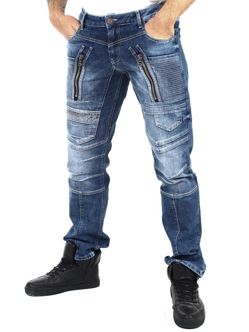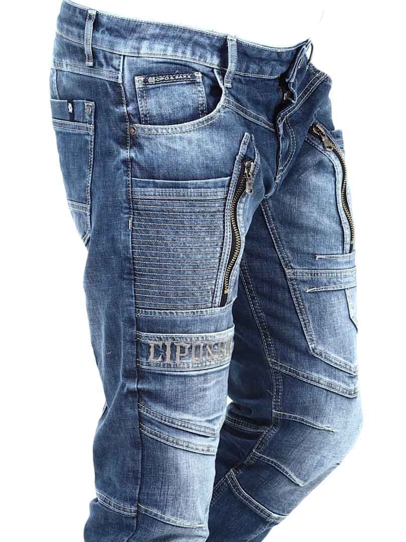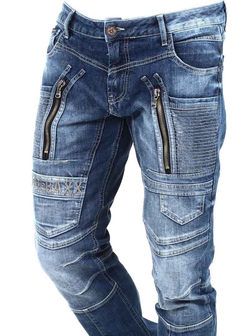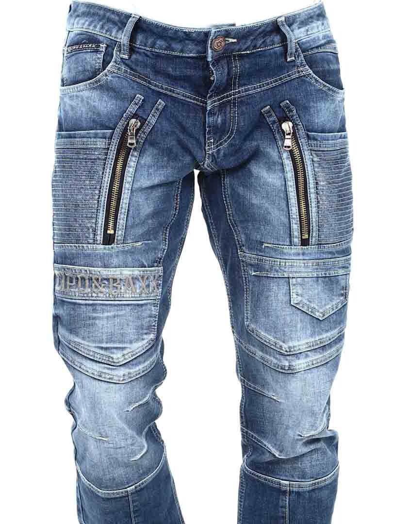 Spodnie jeansowe z zamkiem błyskawicznym i wyraźnymi szwami. Rozciągliwy model z wąskimi nogawkami i kilkoma kieszeniami. Zamki błyskawiczne z przodu to tylko detal.