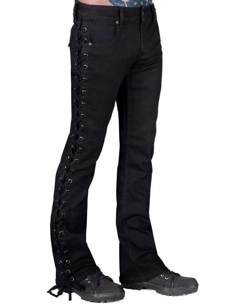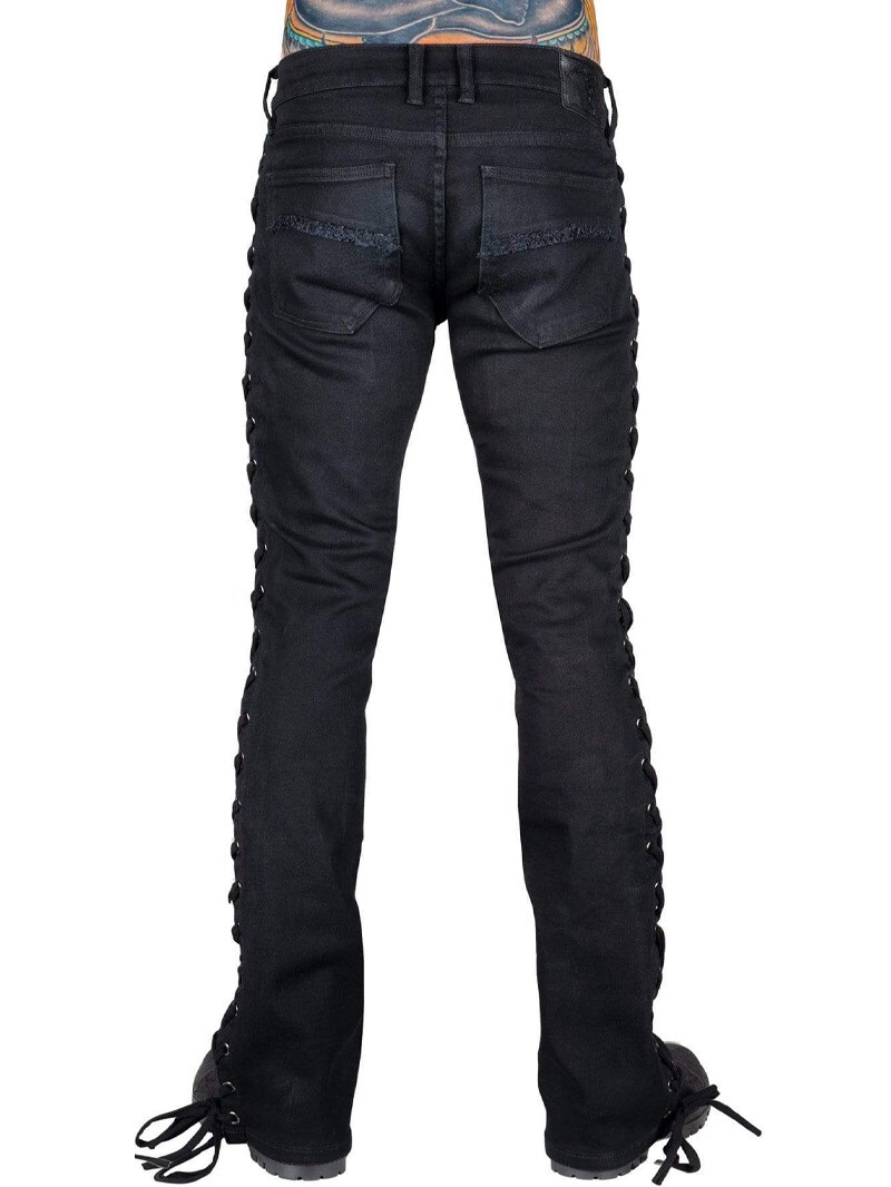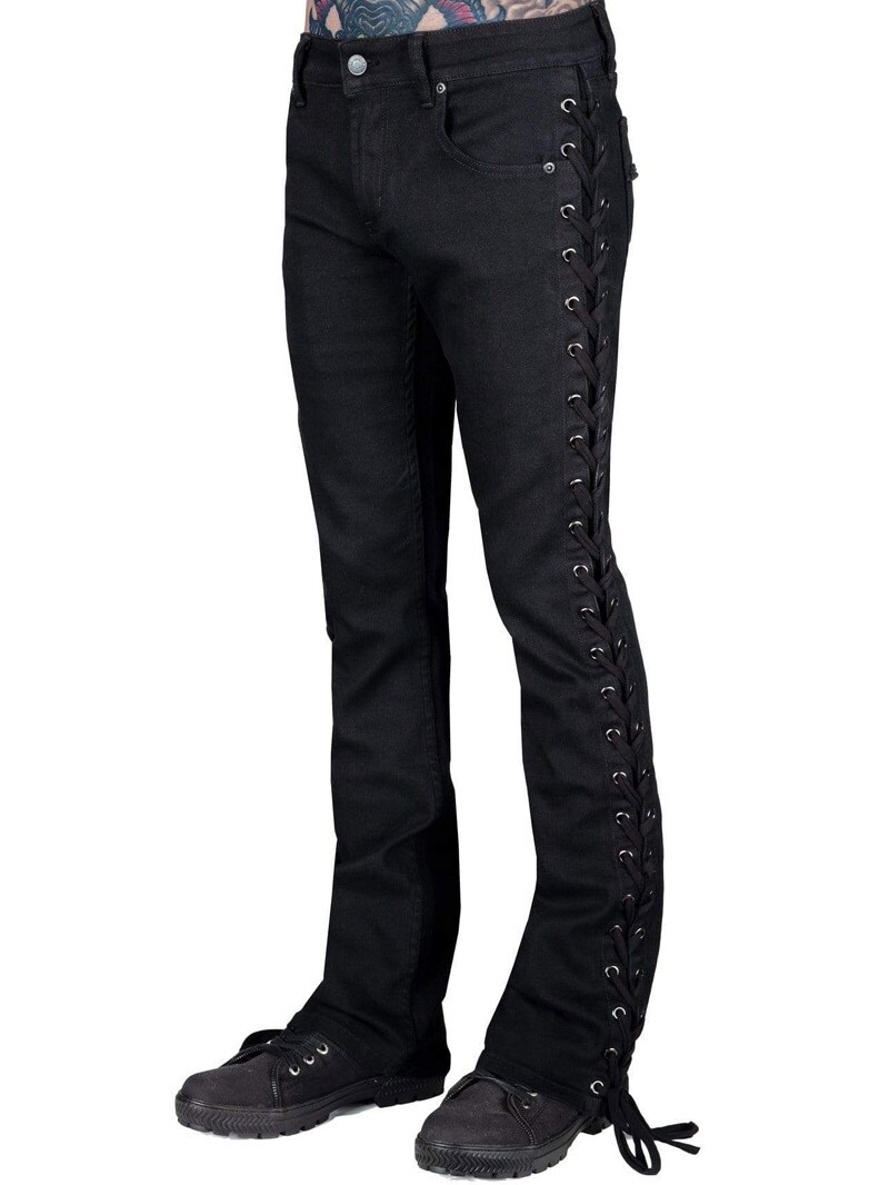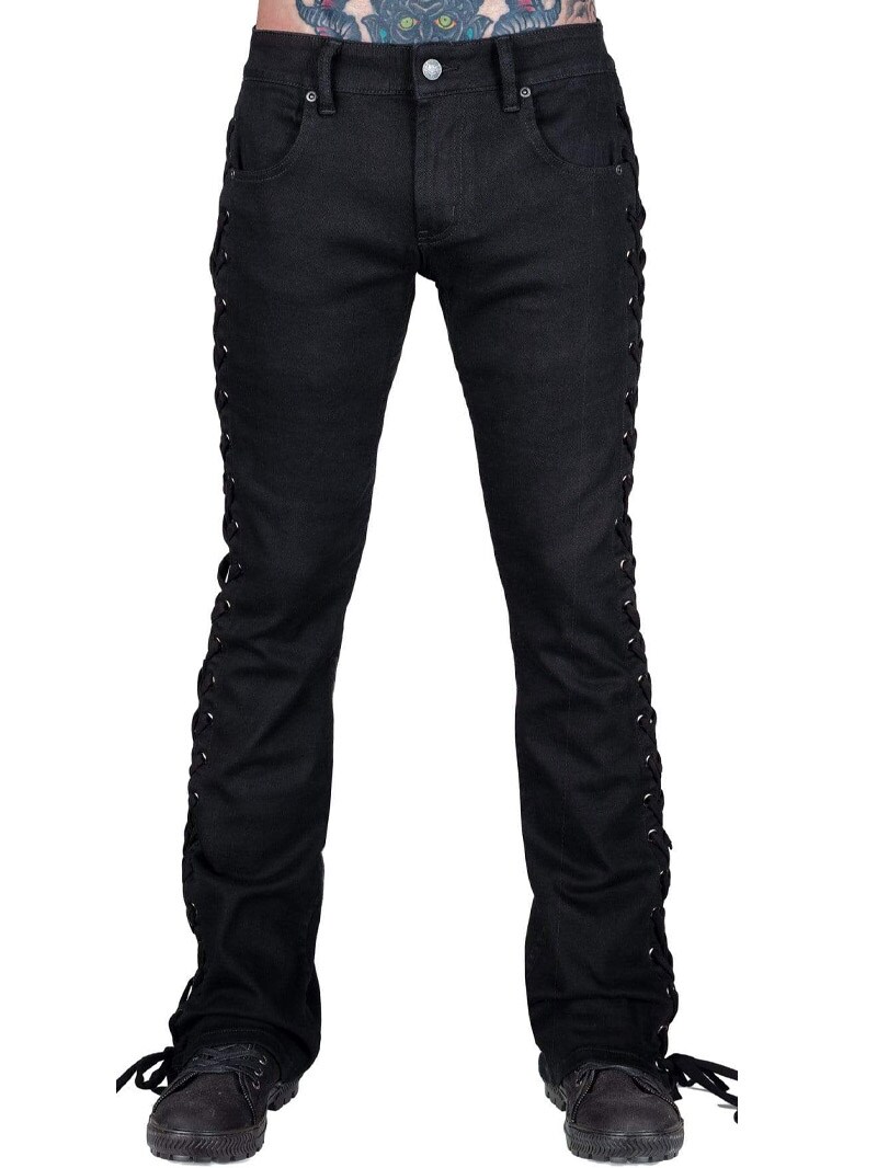 Wornstar Hellraiser jeans w kolorze czarnym to bezczelny model bootcut, który wyróżnia się sznurowaniem wzdłuż całych boków.