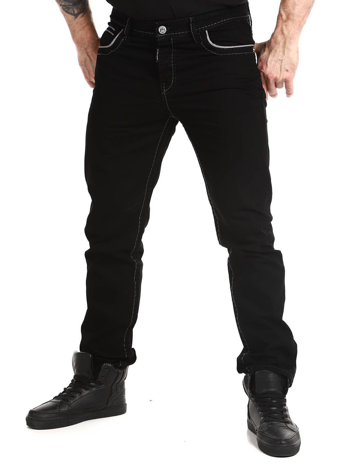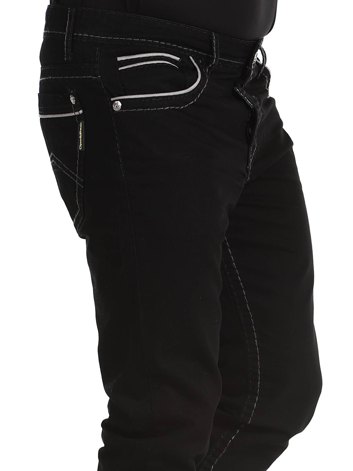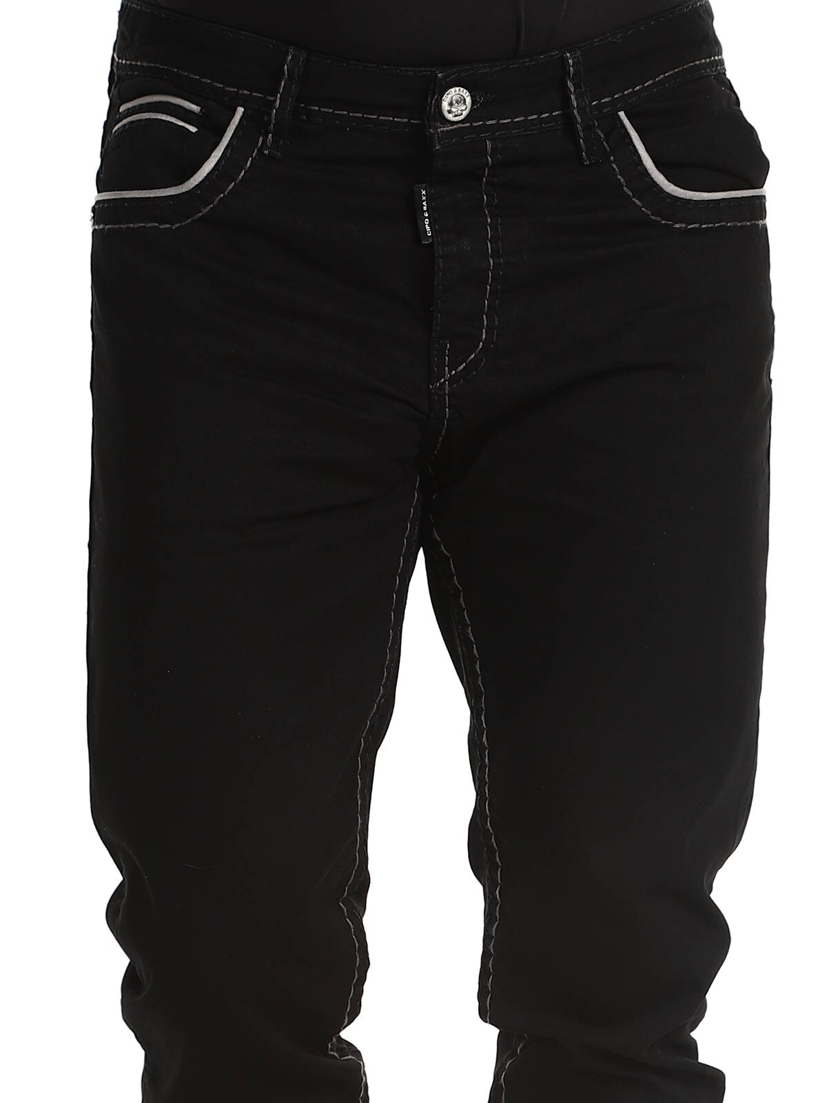 Czarne jeansy o klasycznym kroju z widocznymi szwami w kontrastowych kolorach. Posiadają cztery kieszenie z przodu i dwie z tyłu. Stylowe spodnie, które pasują do większości rzeczy!
