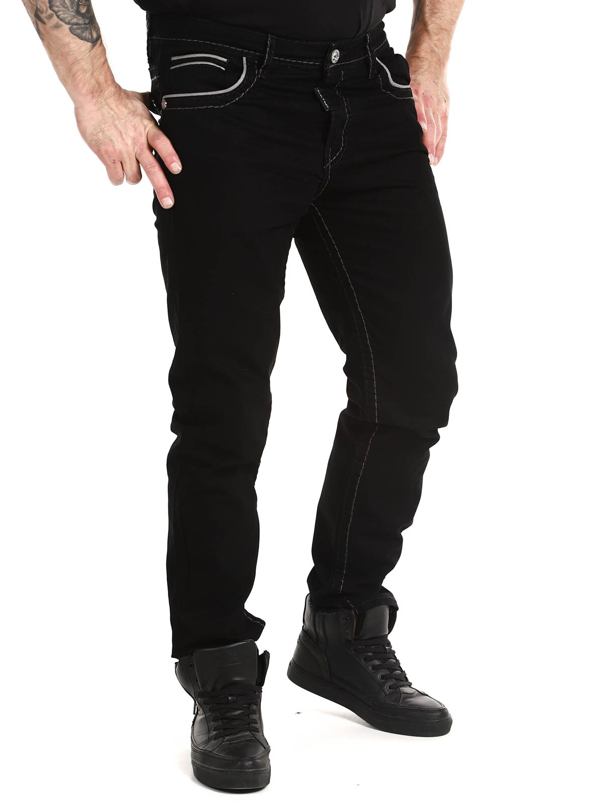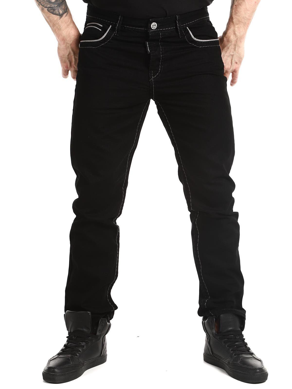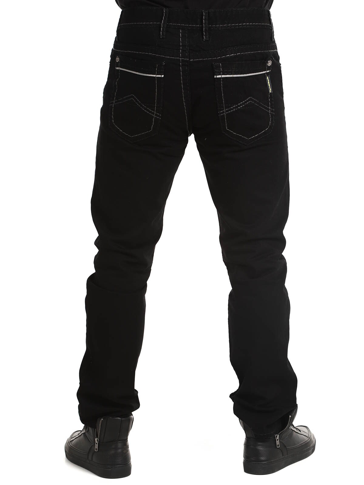 Czarne jeansy o klasycznym kroju z widocznymi szwami w kontrastowych kolorach. Posiadają cztery kieszenie z przodu i dwie z tyłu. Stylowe spodnie, które pasują do większości rzeczy!