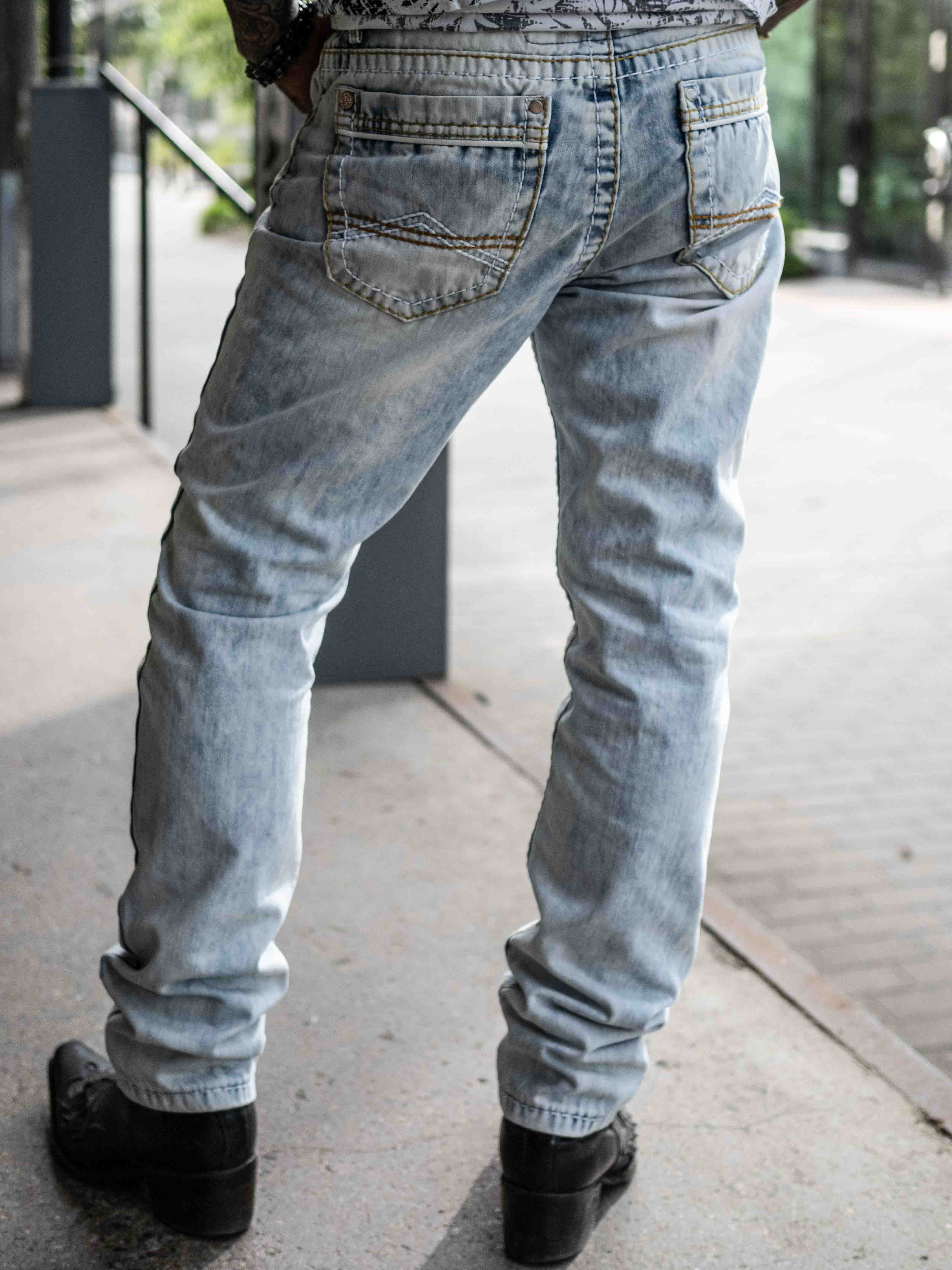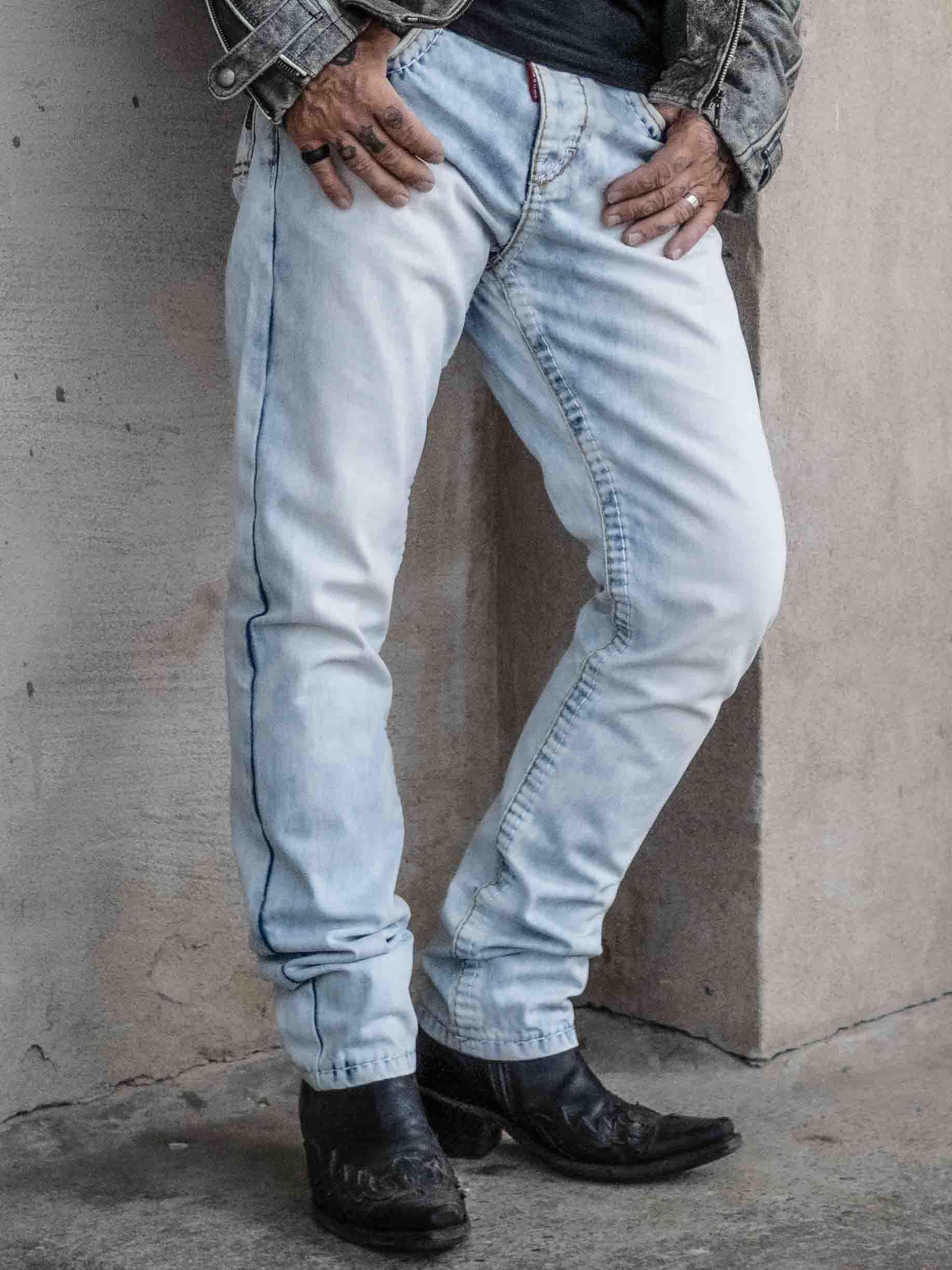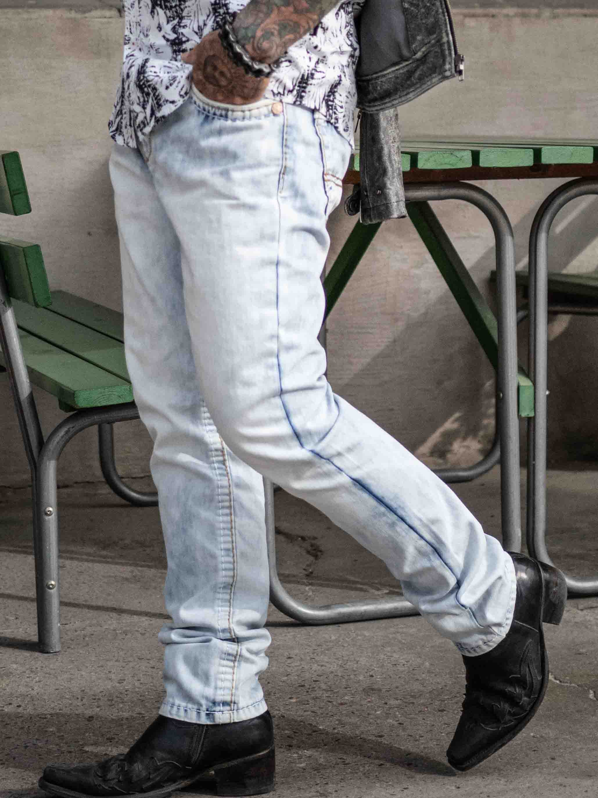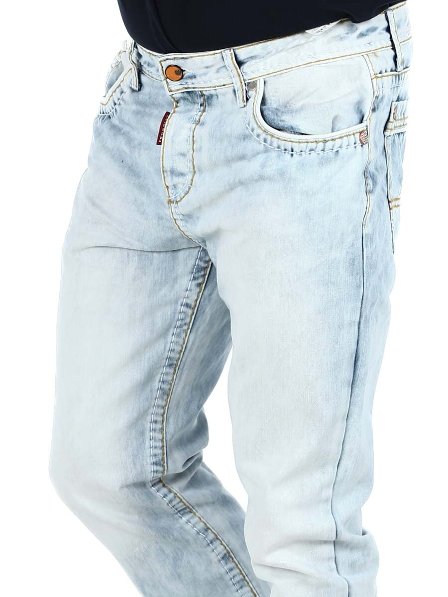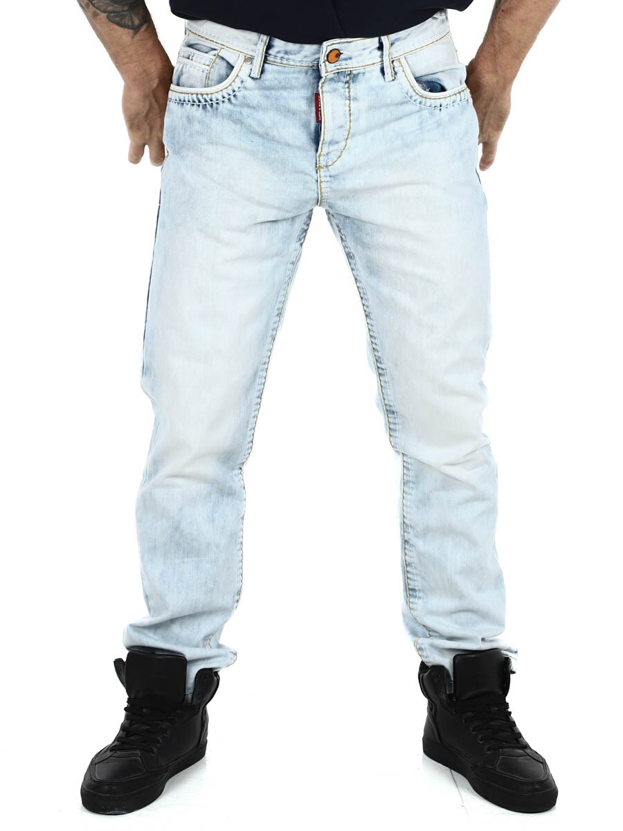 Jeansy o klasycznym kroju z widocznymi szwami w kontrastowych kolorach. Posiadają cztery kieszenie z przodu i dwie z tyłu. Stylowe spodnie, które pasują do większości rzeczy!