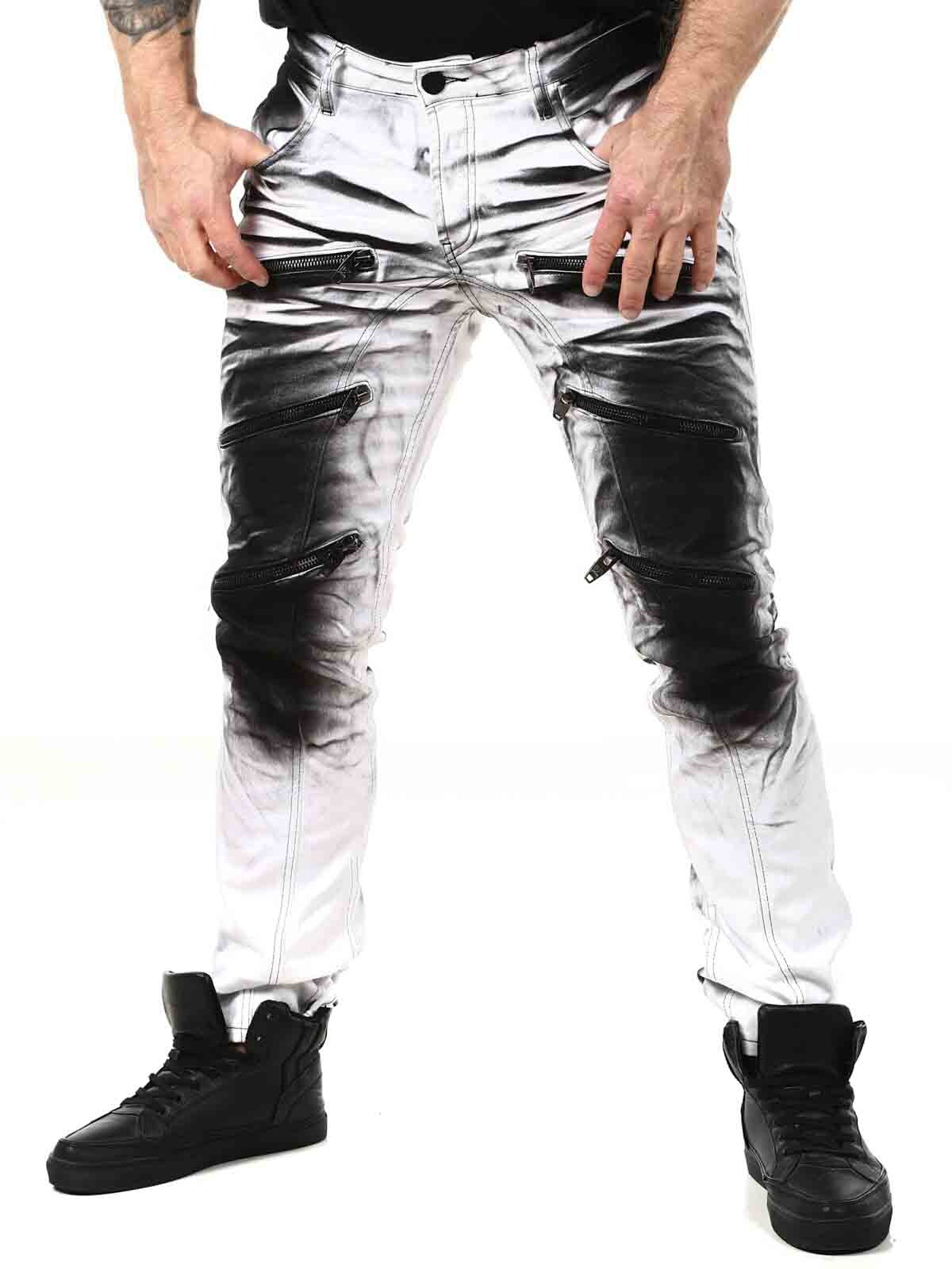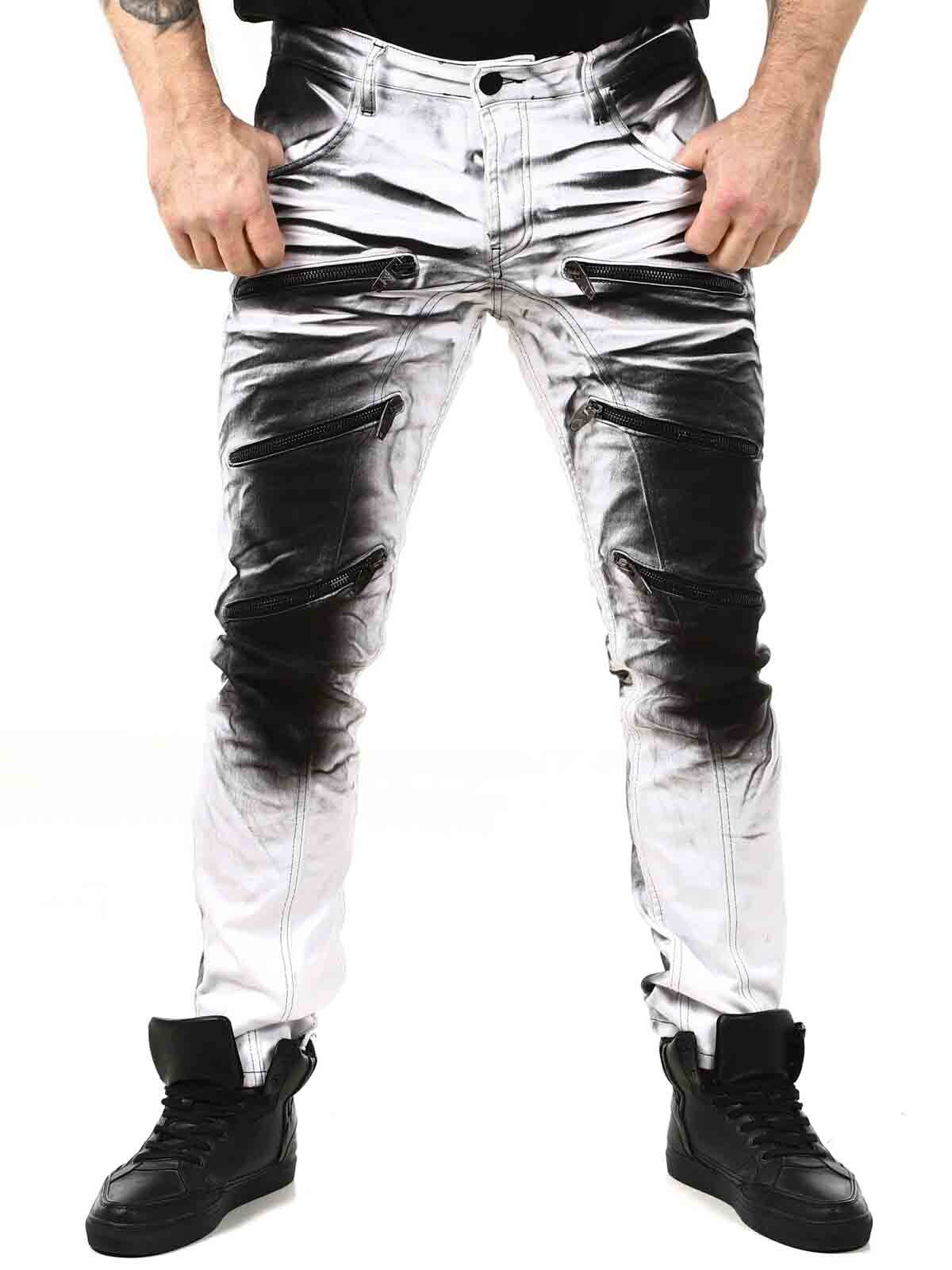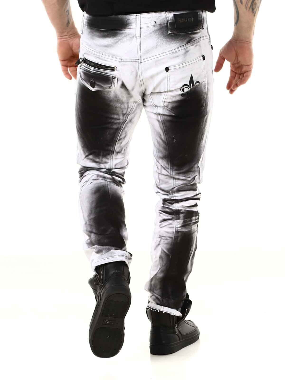 Wytrzymałe jeansy, ze stylowym wykończeniem nogawek. Jeansy posiadają trzy kieszenie z przodu, dwie kieszenie z tyłu oraz szlufki w pasie. Charakteryzują się ciekawymi detalami, zamkami błyskawicznymi, nadrukami i kontrastowymi szwami.