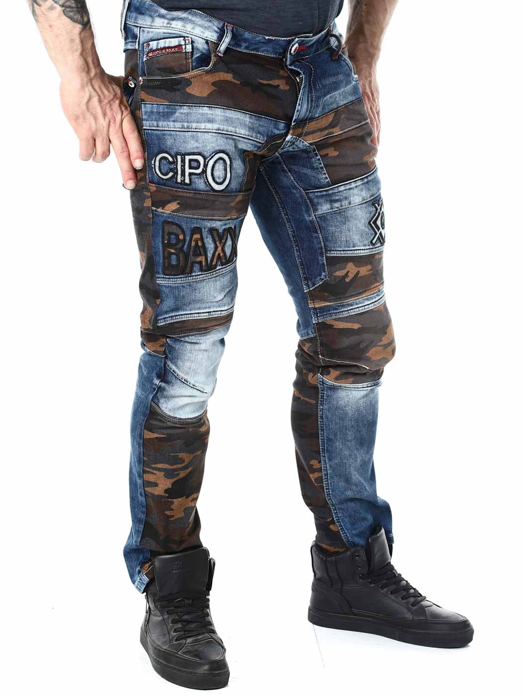 Spodnie w kolorze stonewashed z elementami w kolorze moro. Model z 5 kieszeniami, elastyczny i klasyczny krój. Dopasowane logo z przodu i z tyłu.