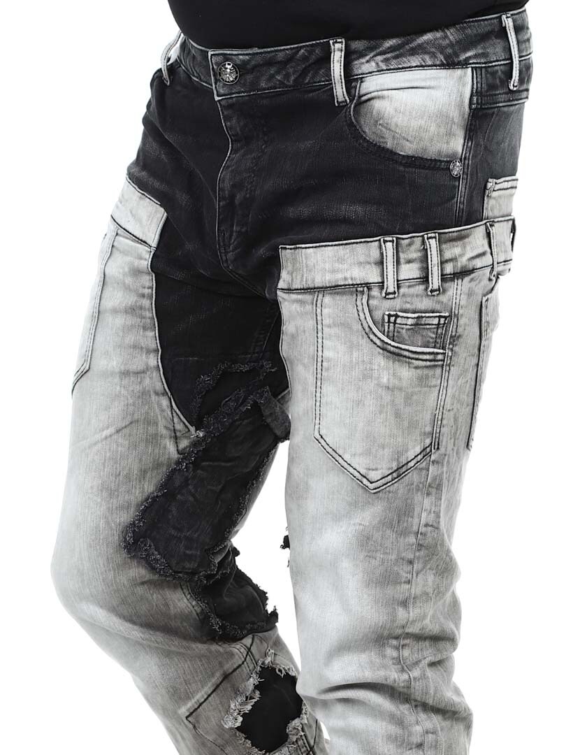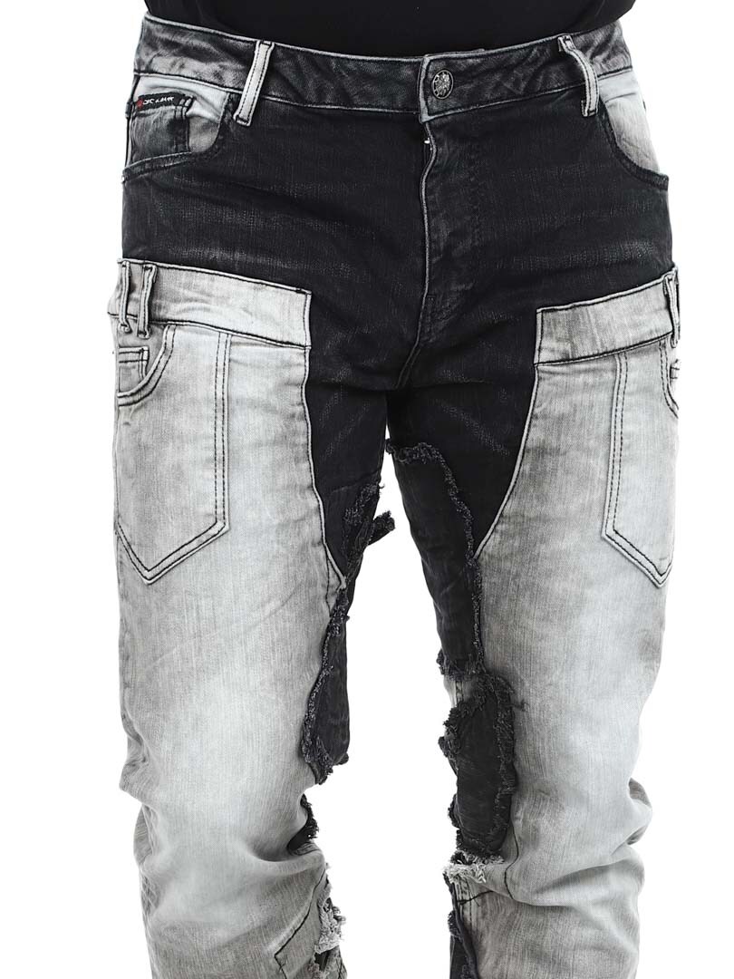 Dżinsy o regularnym kroju z dwukolorowego denimu z wieloma kieszeniami. Materiał jest elastyczny i wygodny, zapewniając świetne dopasowanie bez ograniczania swobody ruchów. Noś je z trampkami, aby uzyskać swobodny styl streetwear, lub z butami, aby uzyskać bardziej rock'n'rollowy wygląd.