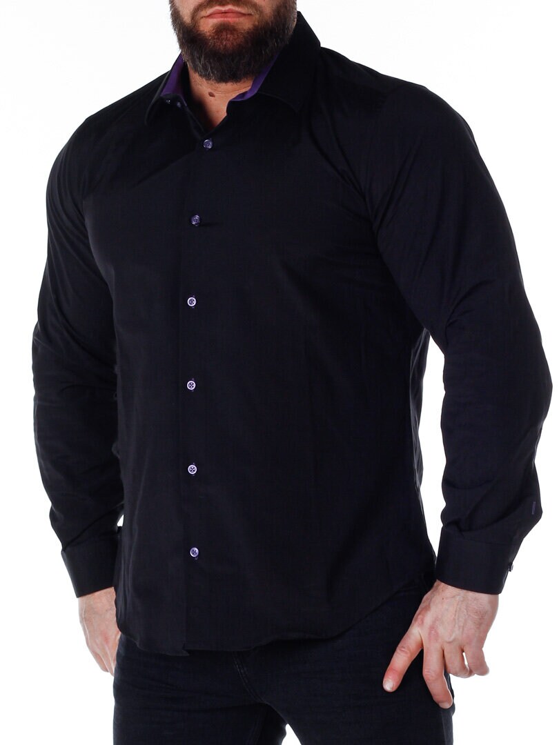 Koszula z wygodnego, lekko rozciągliwego materiału. Zapinana na guziki. Wnętrze kołnierza i mankiety w kontrastowym kolorze. Węższy model z zaokrąglonym dołem i wzmocnionym kołnierzem, który utrzymuje kształt. Dostępny w większej ilości kolorów!