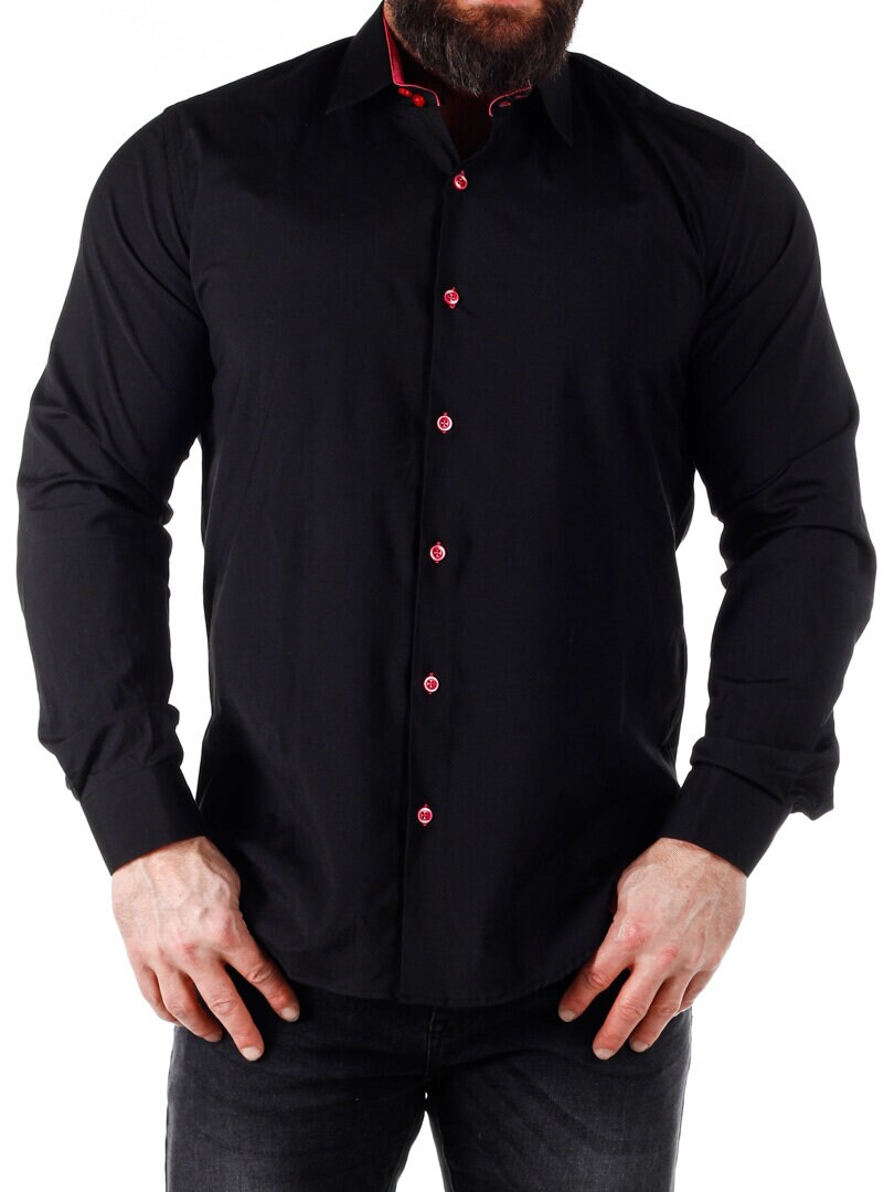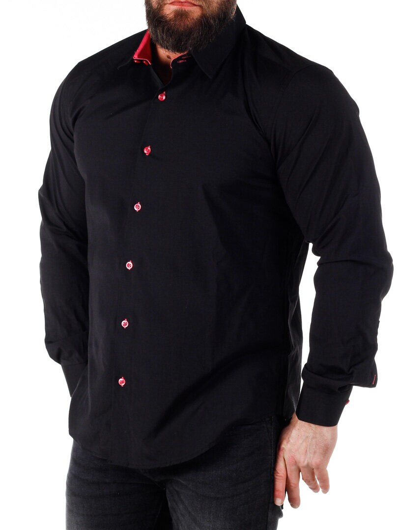 Koszula z wygodnego, lekko rozciągliwego materiału. Zapinana na guziki. Wnętrze kołnierza i mankiety w kontrastowym kolorze. Węższy model z zaokrąglonym dołem i wzmocnionym kołnierzem, który utrzymuje kształt. Dostępny w większej ilości kolorów!