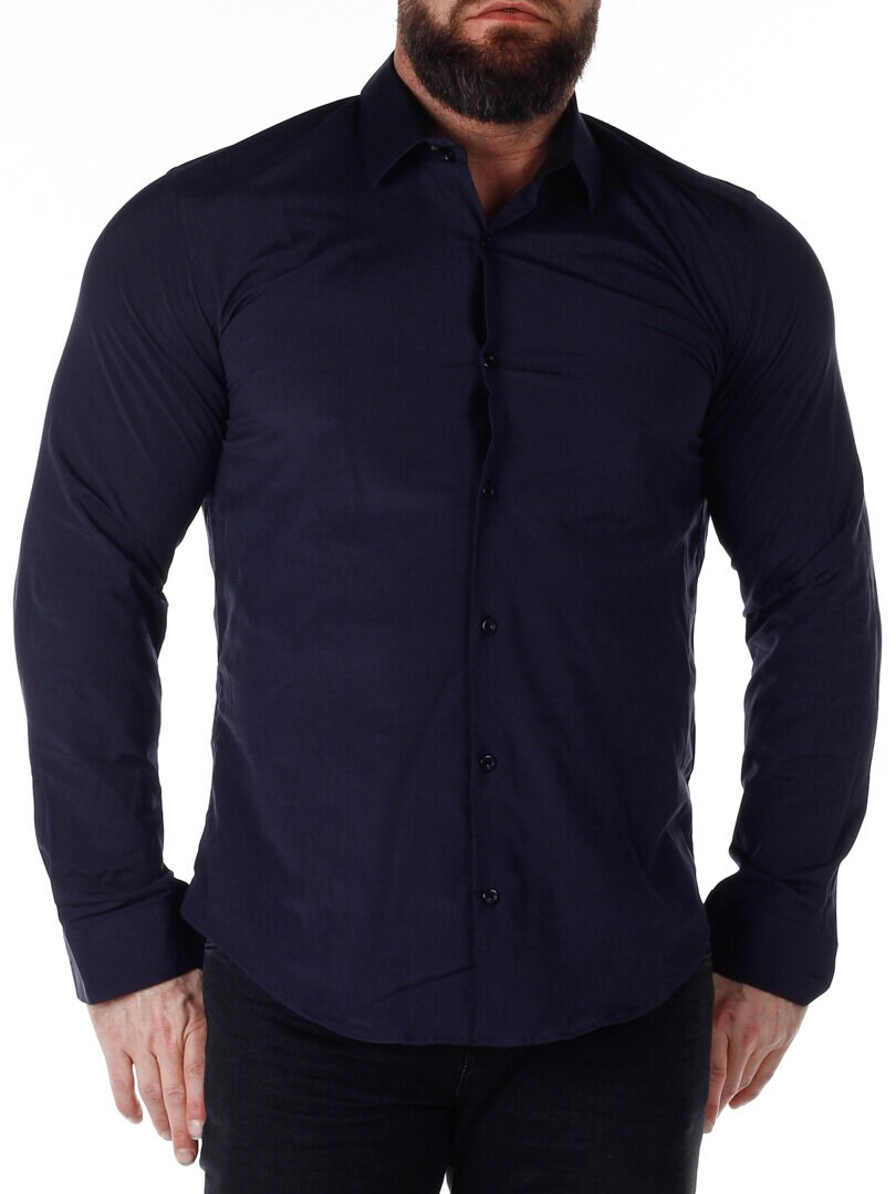 Koszula z wygodnego, lekko rozciągliwego materiału. Zapinana na guziki. Wnętrze kołnierza i mankiety w kontrastowym kolorze. Węższy model z zaokrąglonym dołem i wzmocnionym kołnierzem, który utrzymuje kształt. Dostępny w większej ilości kolorów!
