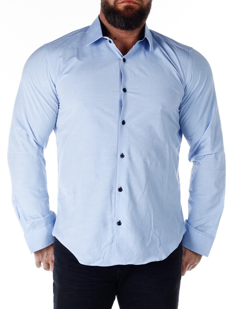 Koszula z wygodnego, lekko rozciągliwego materiału. Zapinana na guziki. Wnętrze kołnierza i mankiety w kontrastowym kolorze. Węższy model z zaokrąglonym dołem i wzmocnionym kołnierzem, który utrzymuje kształt. Dostępny w większej ilości kolorów!