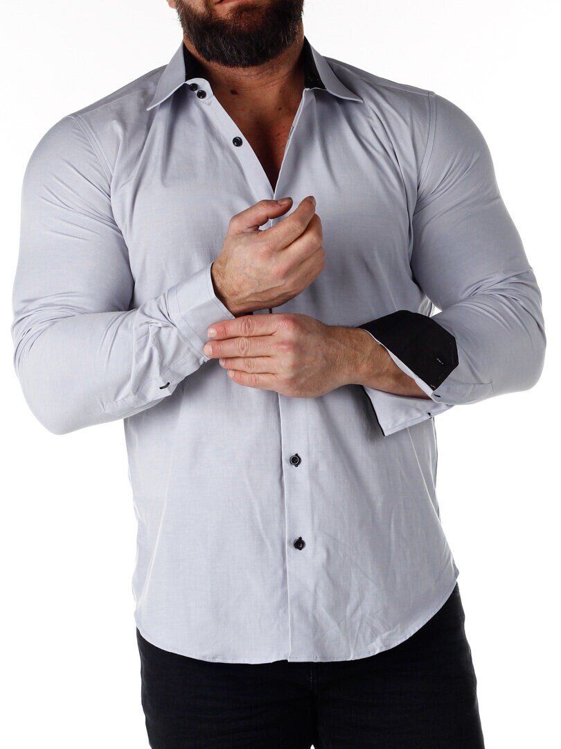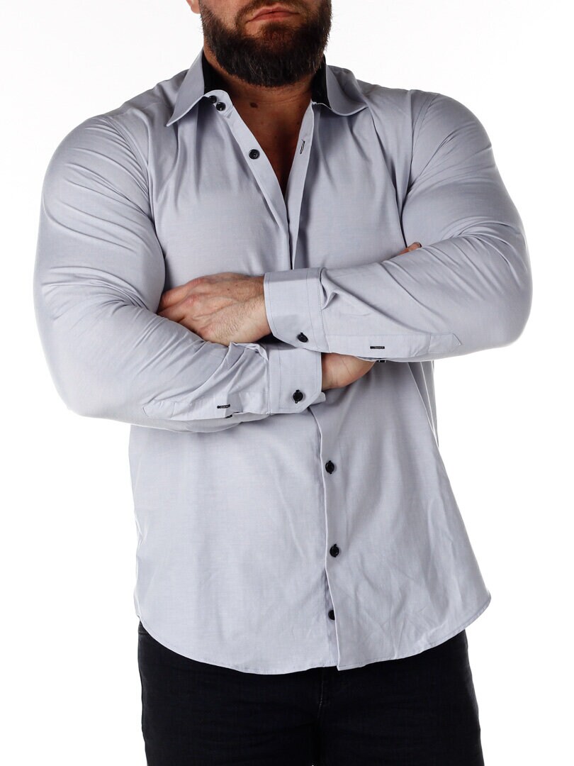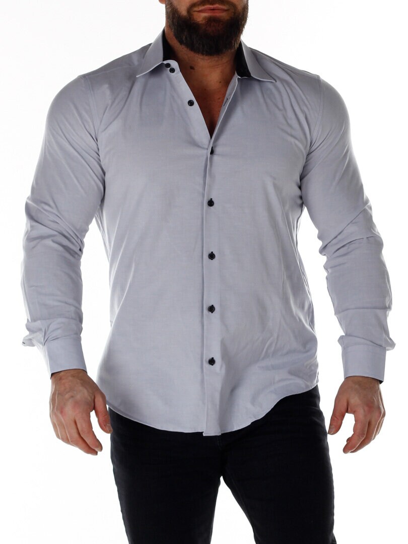 Koszula z wygodnego, lekko rozciągliwego materiału. Zapinana na guziki. Wnętrze kołnierza i mankiety w kontrastowym kolorze. Węższy model z zaokrąglonym dołem i wzmocnionym kołnierzem, który utrzymuje kształt. Dostępny w większej ilości kolorów!