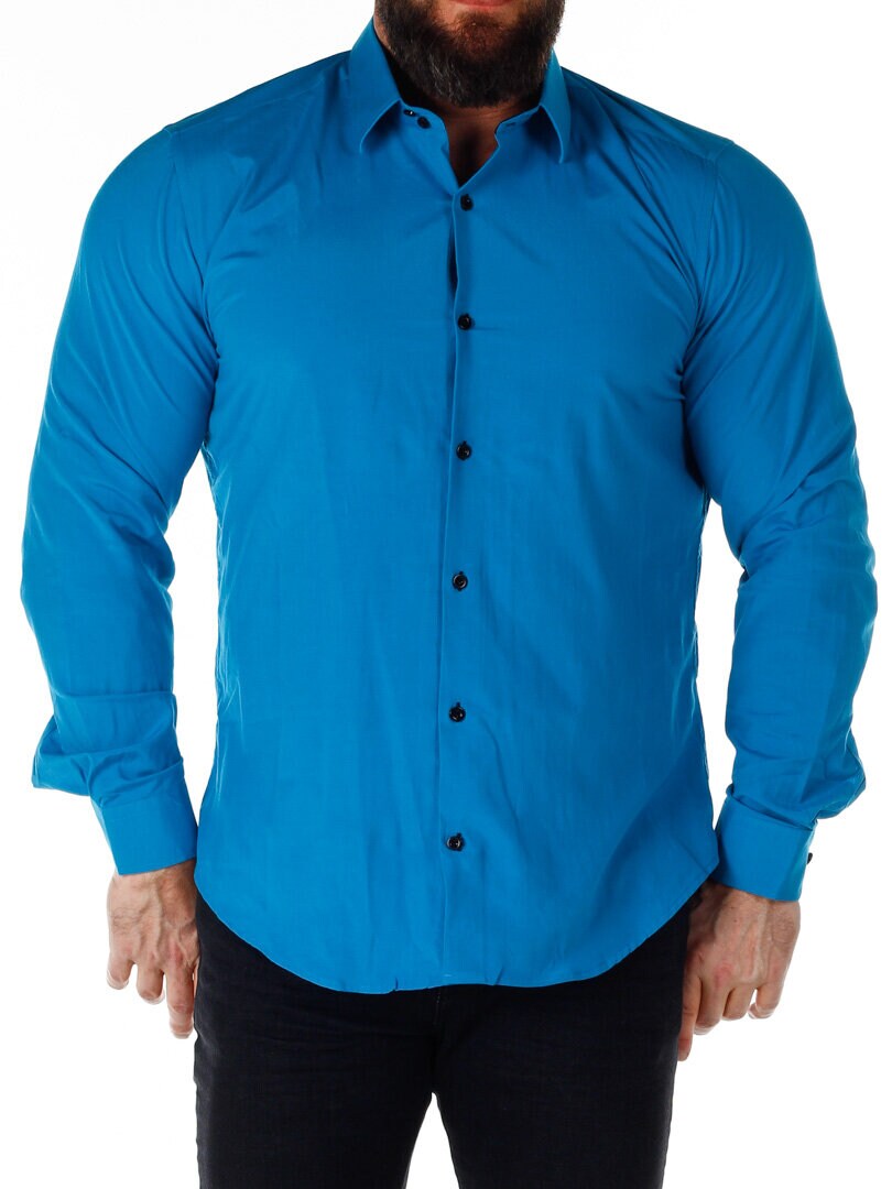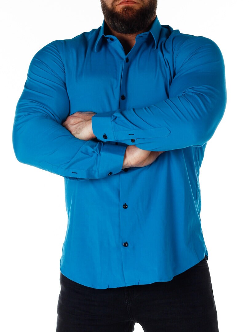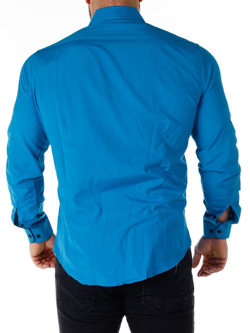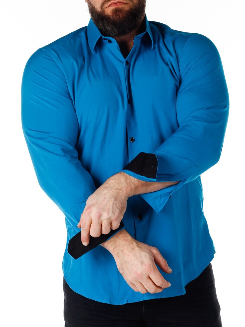 Koszula z wygodnego, lekko rozciągliwego materiału. Zapinana na guziki. Wnętrze kołnierza i mankiety w kontrastowym kolorze. Węższy model z zaokrąglonym dołem i wzmocnionym kołnierzem, który utrzymuje kształt. Dostępny w większej ilości kolorów!
