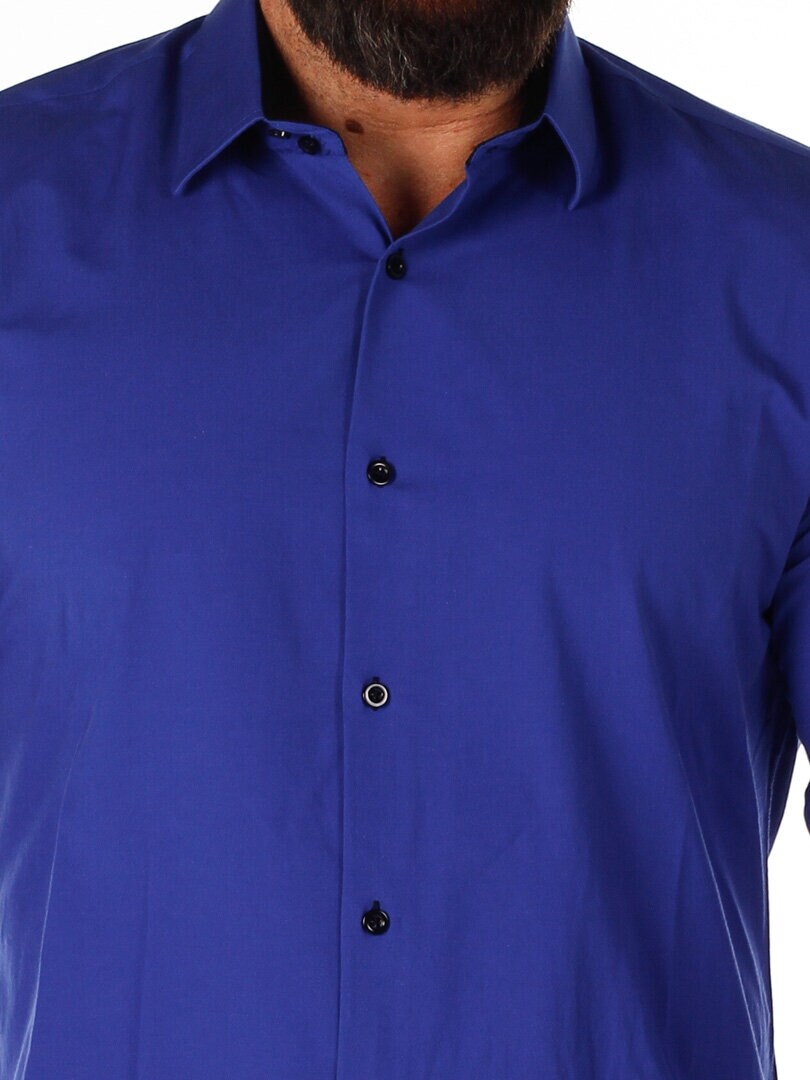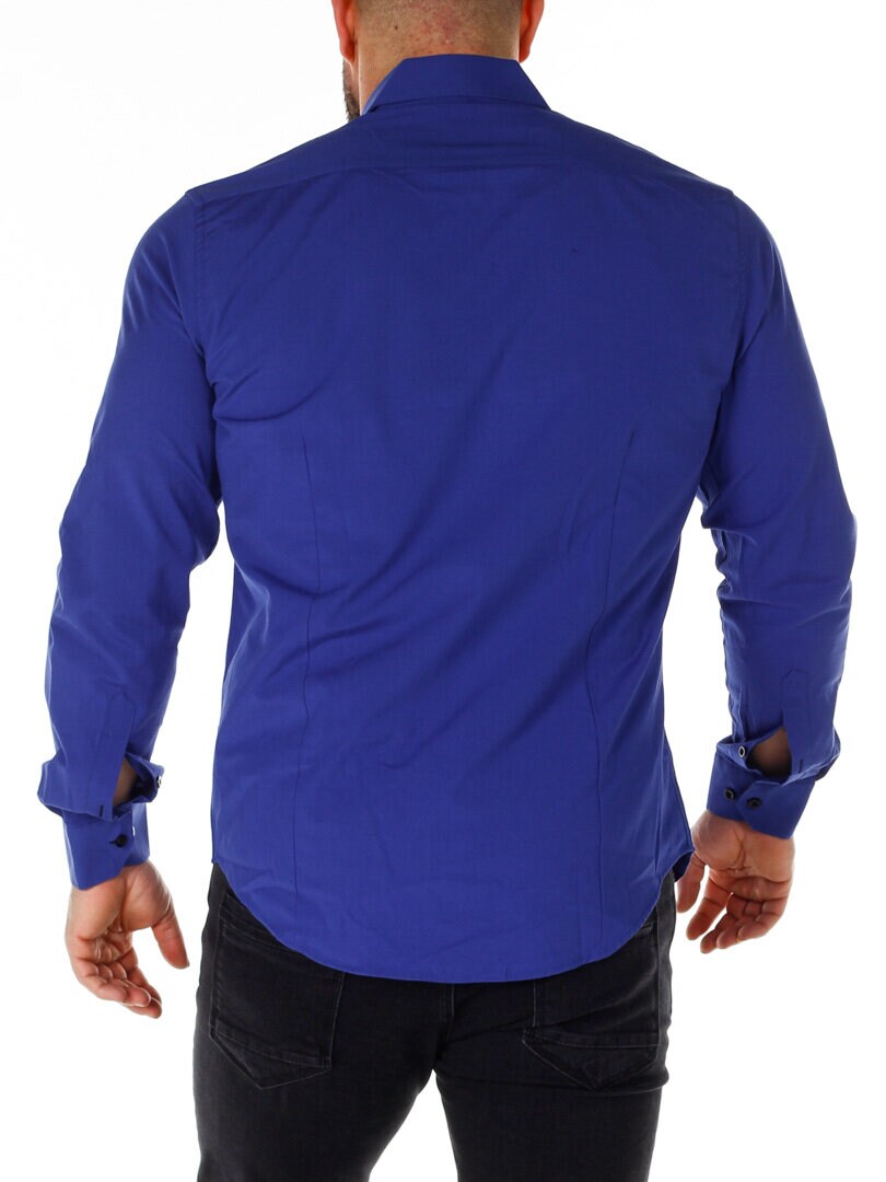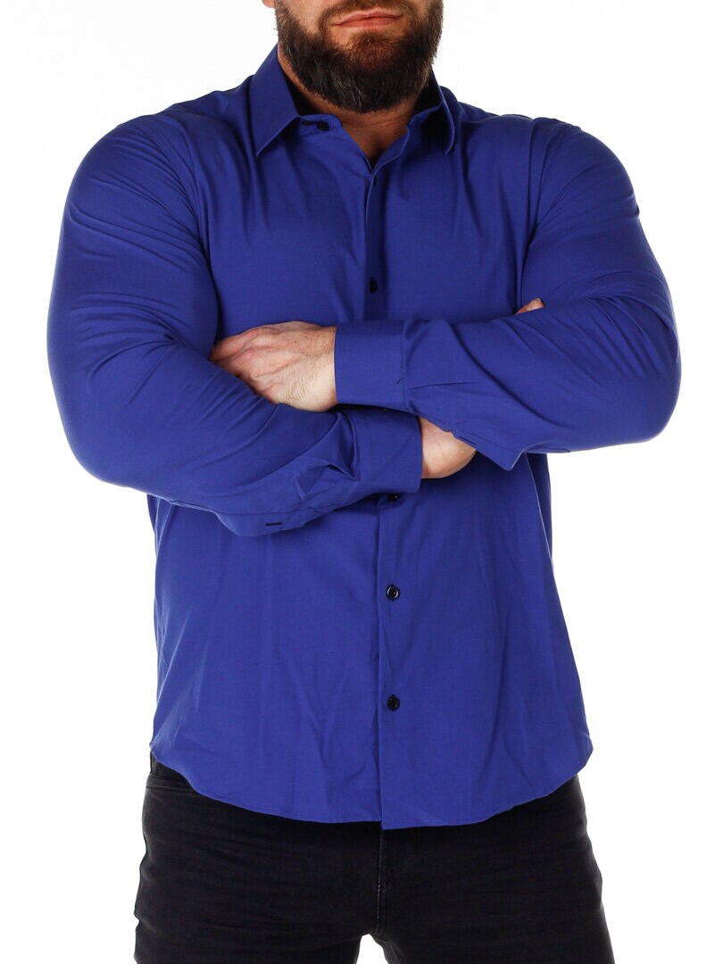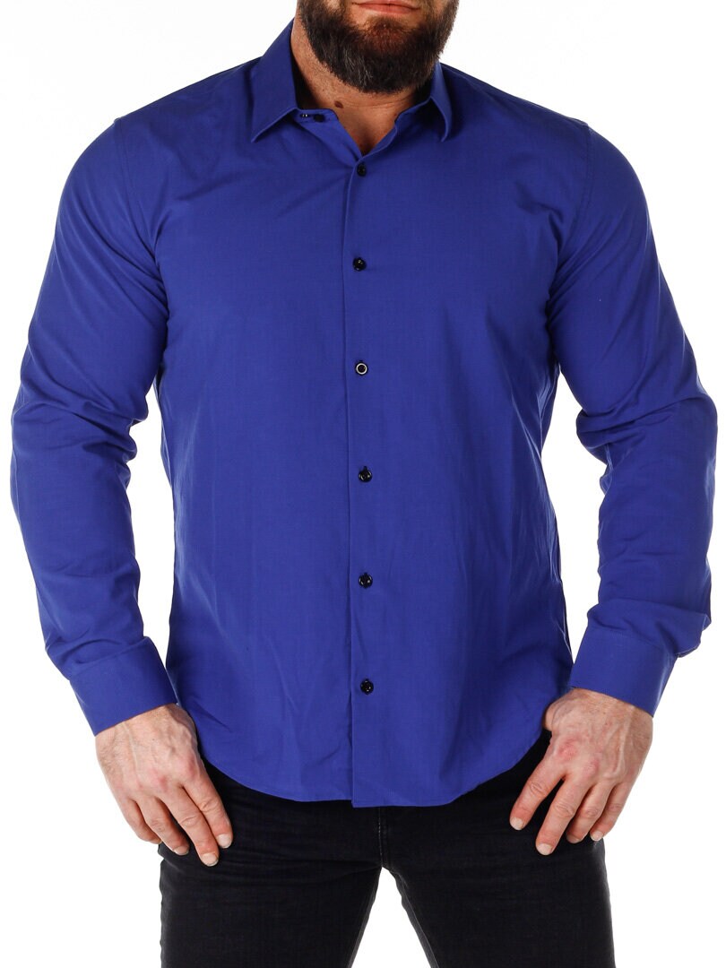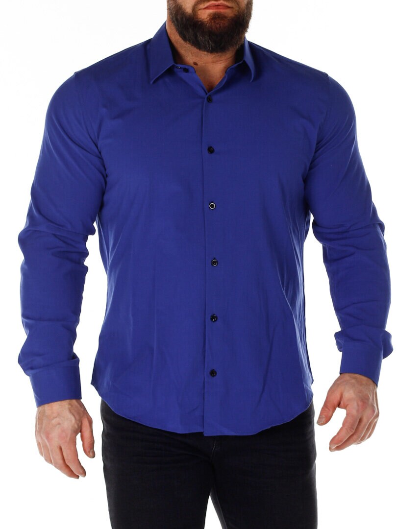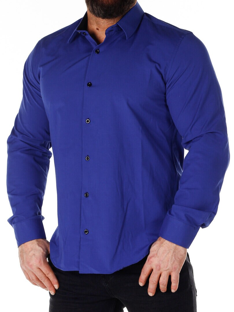 Koszula z wygodnego, lekko rozciągliwego materiału. Zapinana na guziki. Wnętrze kołnierza i mankiety w kontrastowym kolorze. Węższy model z zaokrąglonym dołem i wzmocnionym kołnierzem, który utrzymuje kształt. Dostępny w większej ilości kolorów!