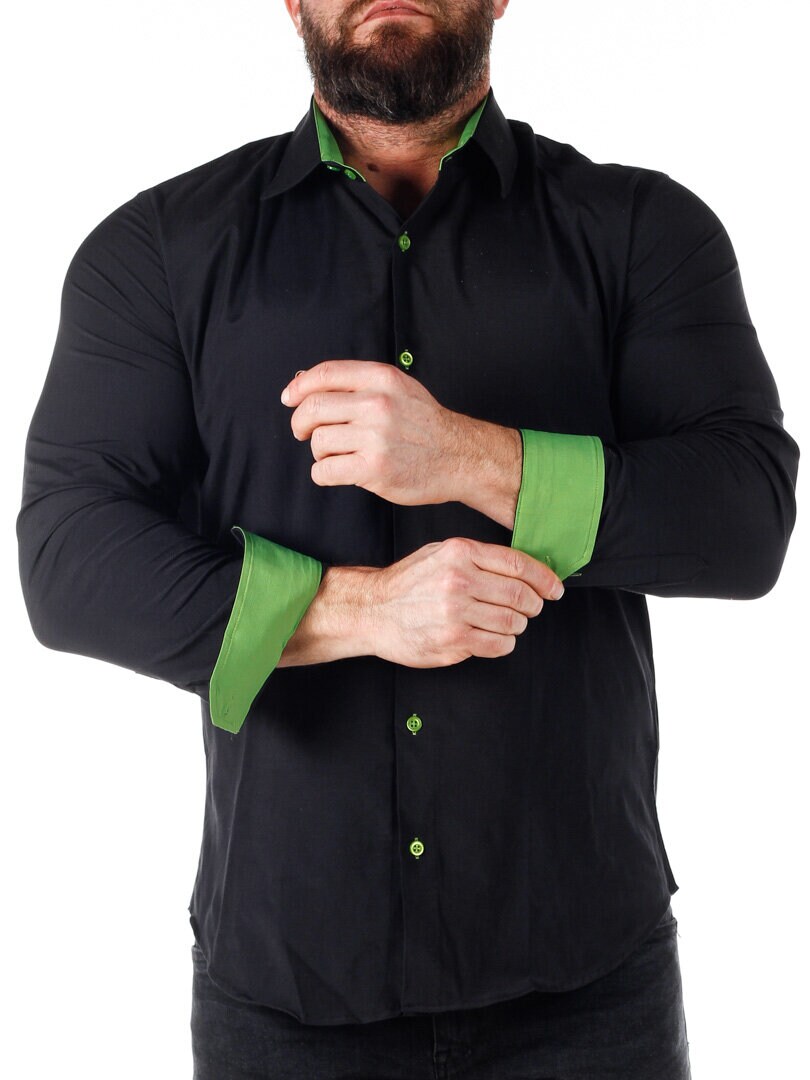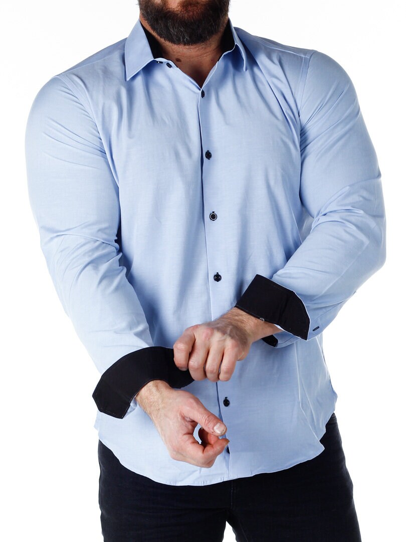 Koszula z wygodnego, lekko rozciągliwego materiału. Zapinana na guziki. Wnętrze kołnierza i mankiety w kontrastowym kolorze. Węższy model z zaokrąglonym dołem i wzmocnionym kołnierzem, który utrzymuje kształt. Dostępny w większej ilości kolorów!