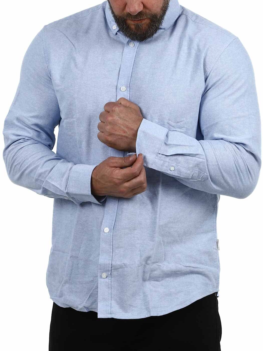 Ta koszula z długim rękawem o kroju regular fit to uniwersalny element garderoby, który sprawdzi się zarówno w biurze, jak i w czasie wolnym. Prosty fason nadaje jej swobodny, a jednocześnie elegancki wygląd, a stylowy niebieski kolor sprawia, że łatwo zestawić ją zarówno z jeansami, jak i z eleganckimi spodniami.