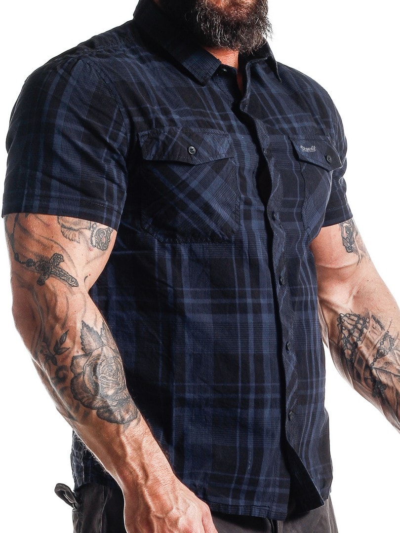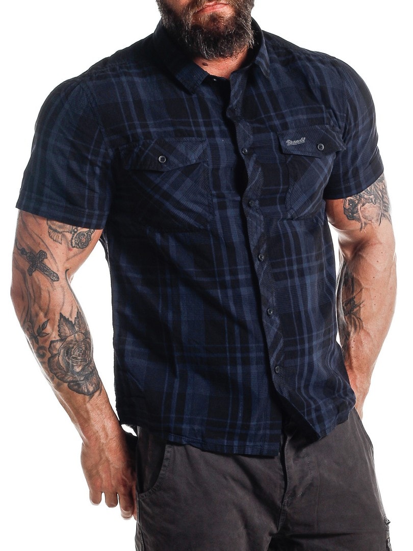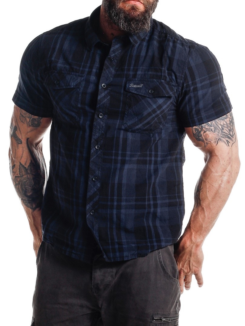 Stylowa koszula z krótkimi rękawami, z wygodnej bawełny, z zapinanymi kieszeniami na piersi i zaokrąglonym dołem.