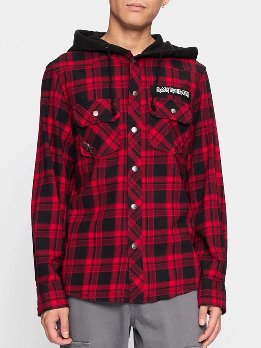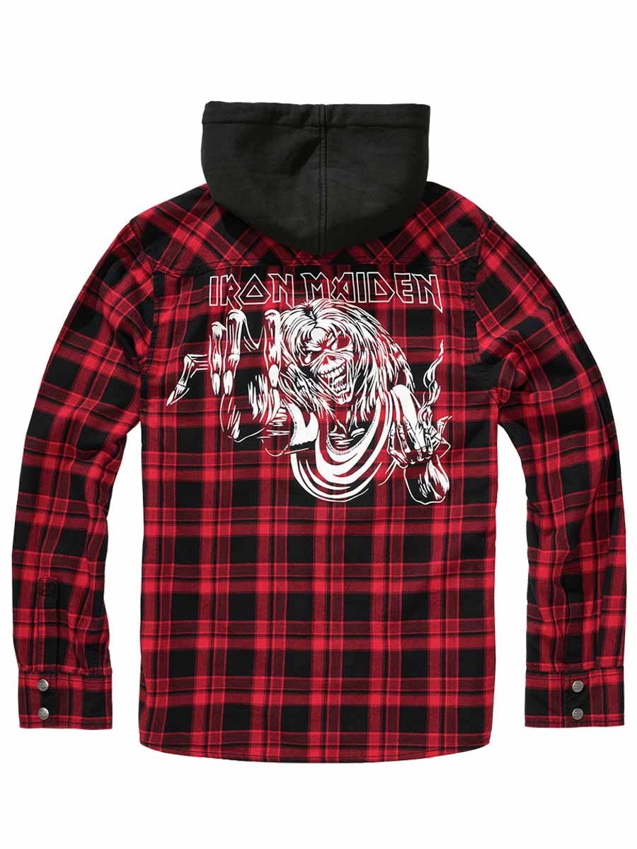 Połączenie klasycznej overshirt i bluzy z kapturem tworzy unikalny, rockowy wygląd. Wyposażona w guziki z logiem, patch Iron Maiden z przodu, duży nadruk Iron Maiden na plecach oraz odpinany metalpin. Posiada pojemny kaptur, regulowane mankiety i zapięcie na guziki.