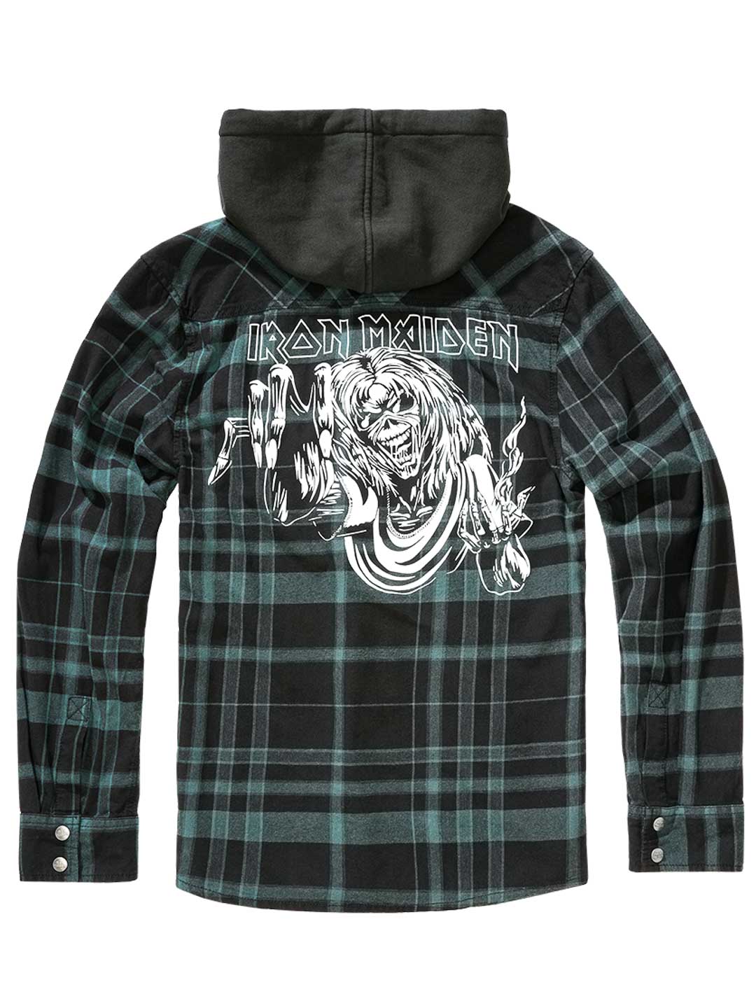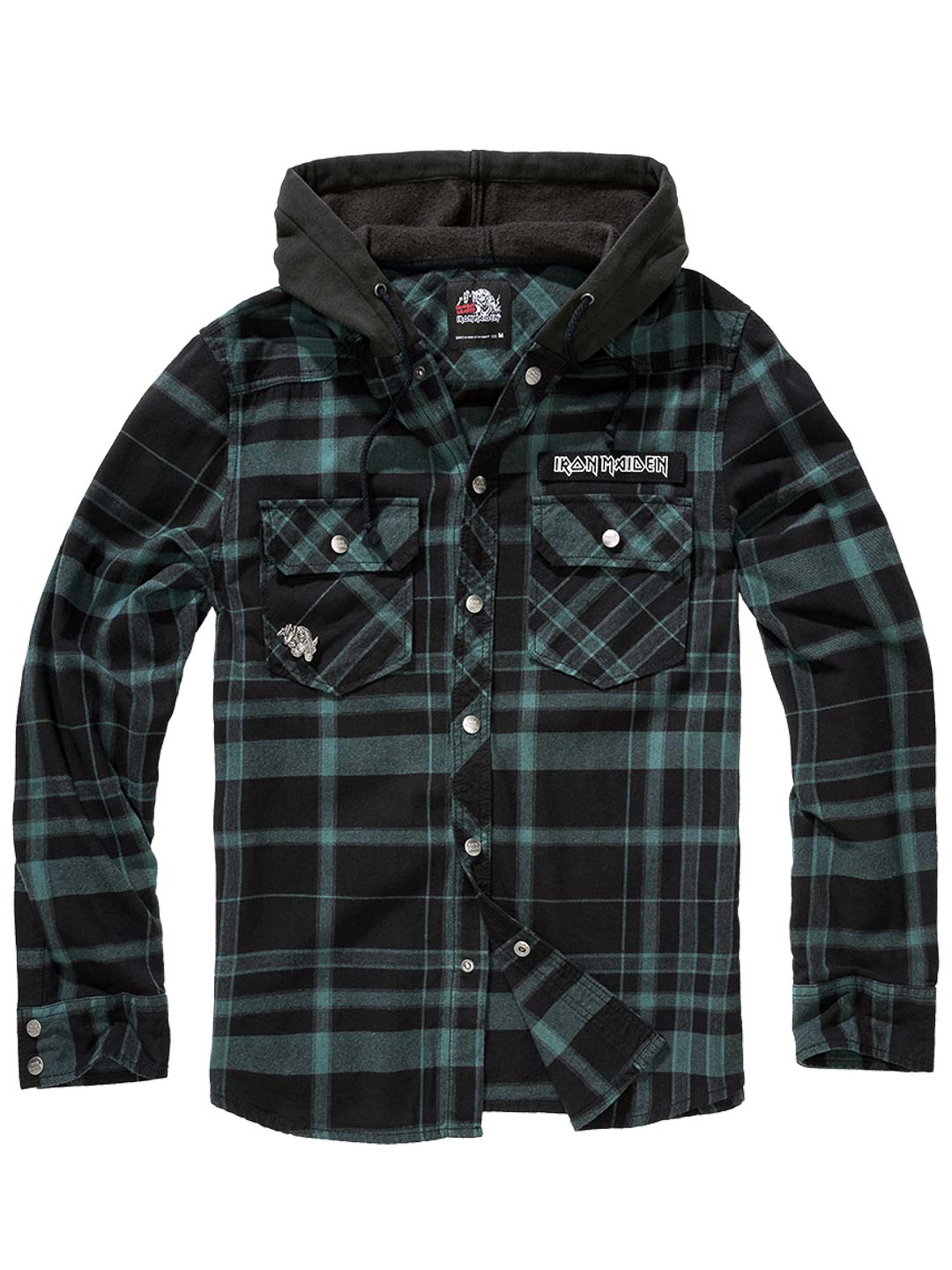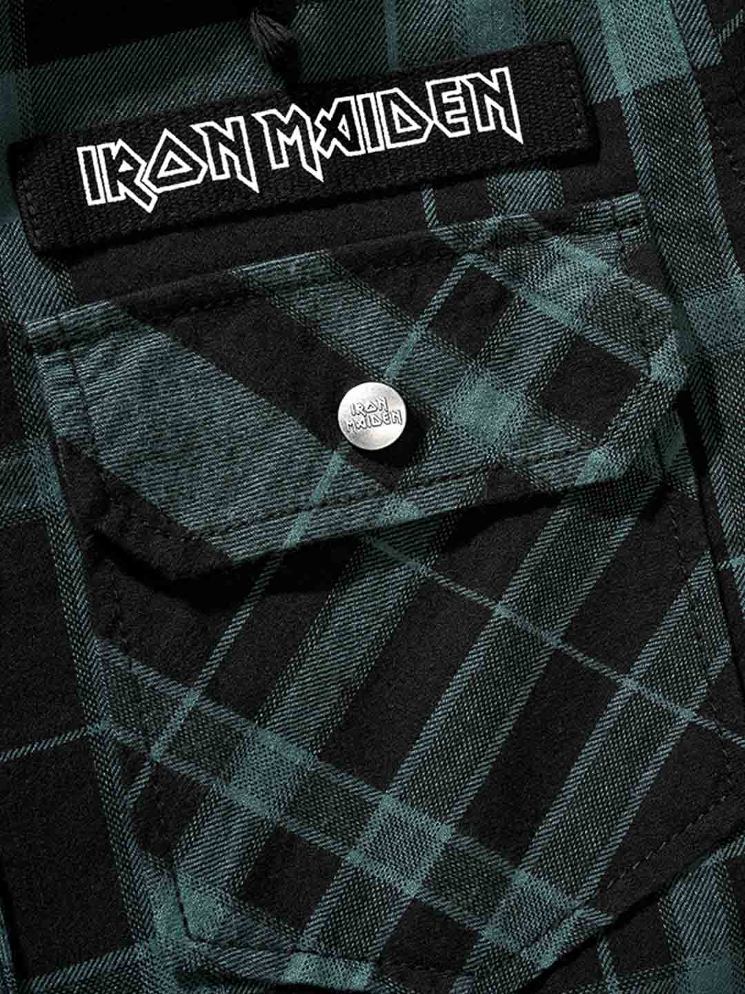 Połączenie klasycznej overshirt i bluzy z kapturem tworzy unikalny, rockowy wygląd. Wyposażona w guziki z logiem, patch Iron Maiden z przodu, duży nadruk Iron Maiden na plecach oraz odpinany metalpin. Posiada pojemny kaptur, regulowane mankiety i zapięcie na guziki.