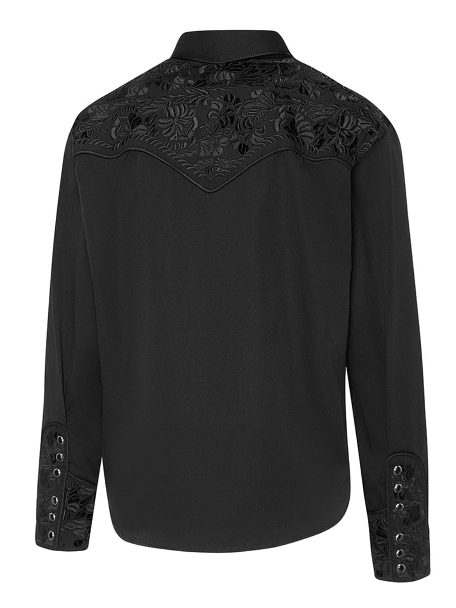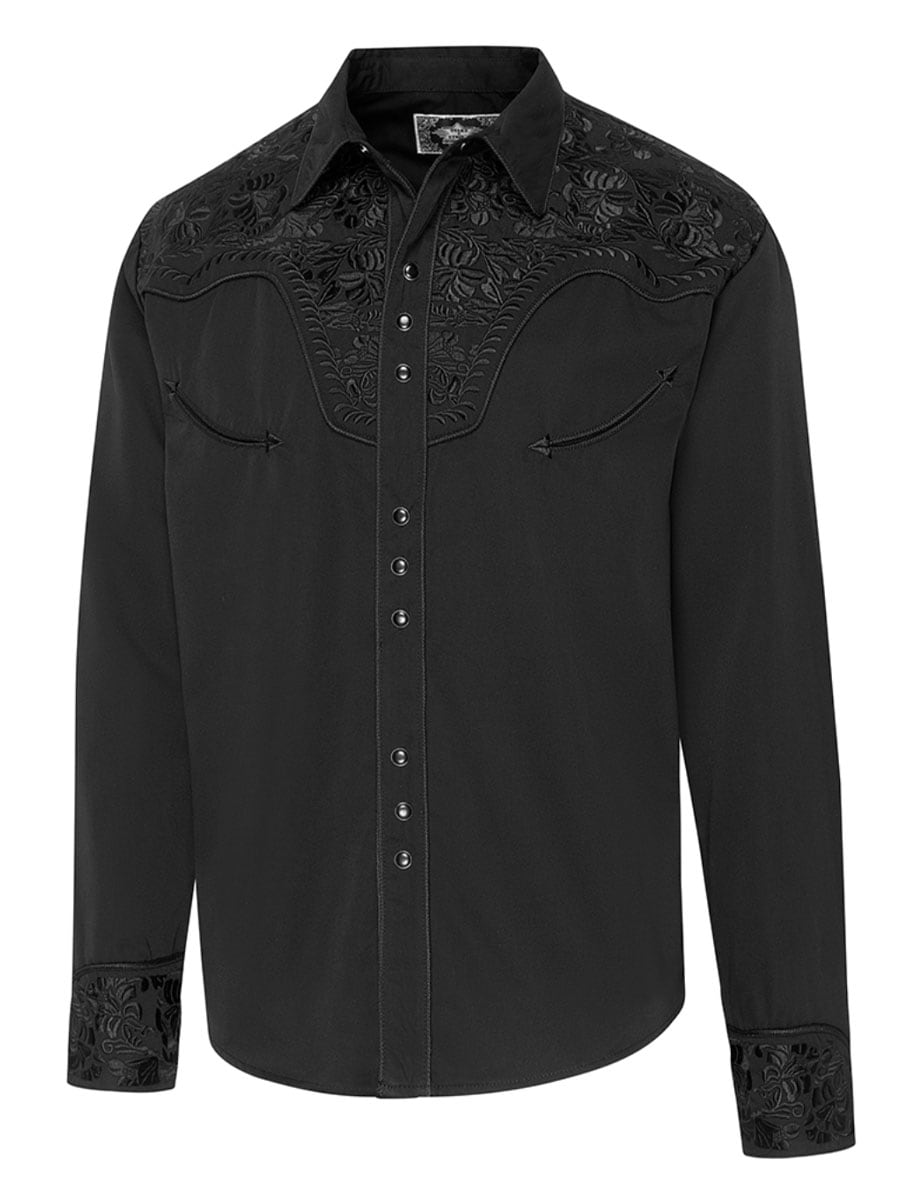 Stylowa koszula westernowa z klasycznymi detalami i autentycznym kowbojskim charakterem. Czarna koszula posiada tradycyjną westernową część na ramionach (yoke) i ozdobny haft na piersi i plecach, co nadaje jej charakterystyczny i przyciągający wzrok wygląd. Wysokie mankiety z sześcioma guzikami nadają koszuli wyrazisty styl i wzmacniają klasyczny westernowy wygląd. Mieszanka poliestru i wiskozy sprawia, że koszula jest zarówno wygodna, jak i trwała.