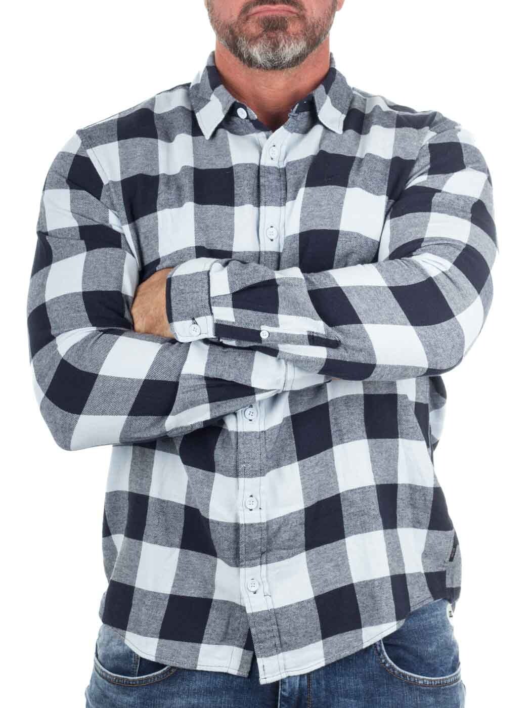 Modna koszula z miękkiej flaneli w kratę. Klasyczny kołnierzyk i zapięcie na guziki z przodu tworzą ponadczasowy styl, który dobrze wygląda zarówno rozpięty na t-shirt, jak i zapięty w bardziej eleganckiej wersji.