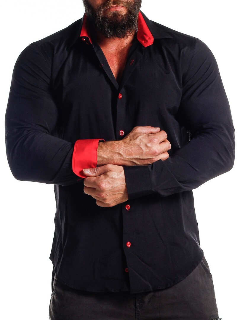 Koszula z wygodnego, lekko rozciągliwego materiału. Zapinana na guziki. Wnętrze kołnierza i mankiety w kontrastowym kolorze. Węższy model z zaokrąglonym dołem i wzmocnionym kołnierzem, który utrzymuje kształt. Dostępny w większej ilości kolorów!