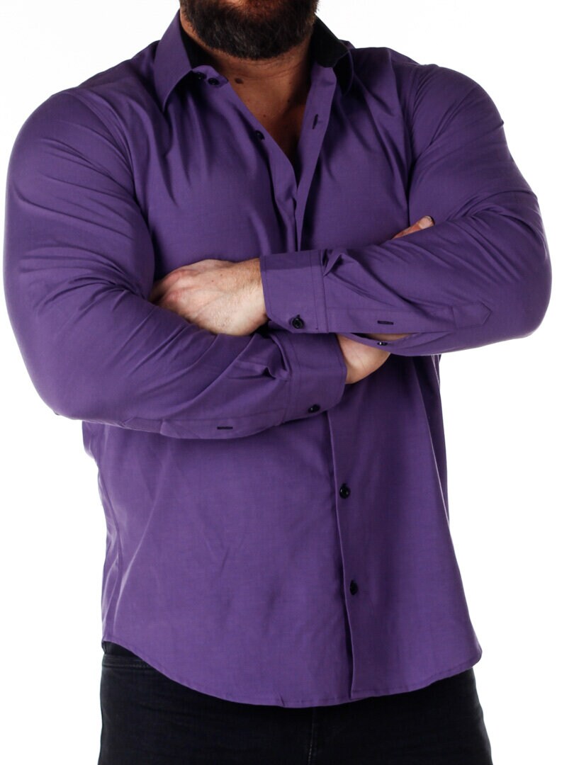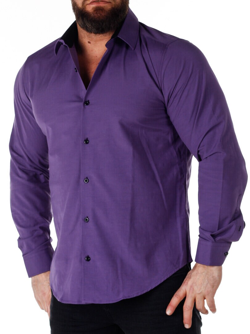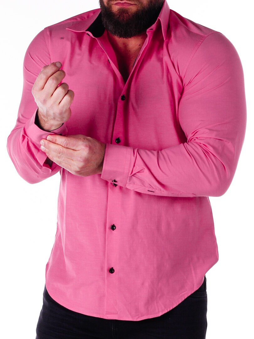 Koszula z wygodnego, lekko rozciągliwego materiału. Zapinana na guziki. Wnętrze kołnierza i mankiety w kontrastowym kolorze. Węższy model z zaokrąglonym dołem i wzmocnionym kołnierzem, który utrzymuje kształt. Dostępny w większej ilości kolorów!