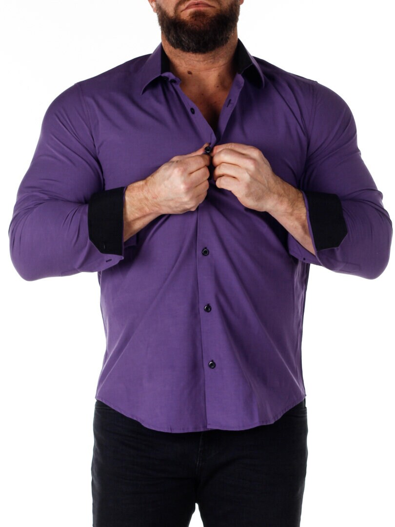 Koszula z wygodnego, lekko rozciągliwego materiału. Zapinana na guziki. Wnętrze kołnierza i mankiety w kontrastowym kolorze. Węższy model z zaokrąglonym dołem i wzmocnionym kołnierzem, który utrzymuje kształt. Dostępny w większej ilości kolorów!