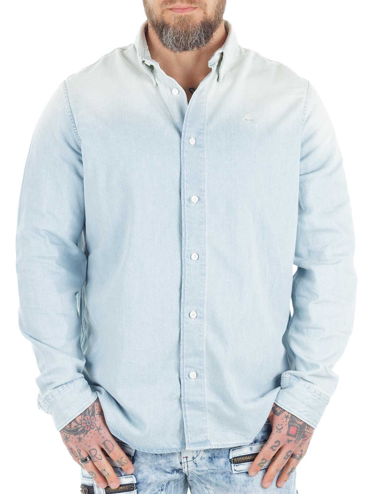 Koszula z jasnego denimu z efektem cieniowania, który nadaje jej dodatkowego charakteru. Posiada klasyczny kołnierzyk button down oraz krój regular fit, dzięki czemu można ją nosić zarówno rozpiętą na t-shirt, jak i w bardziej eleganckiej stylizacji z chinosami lub jeansami.