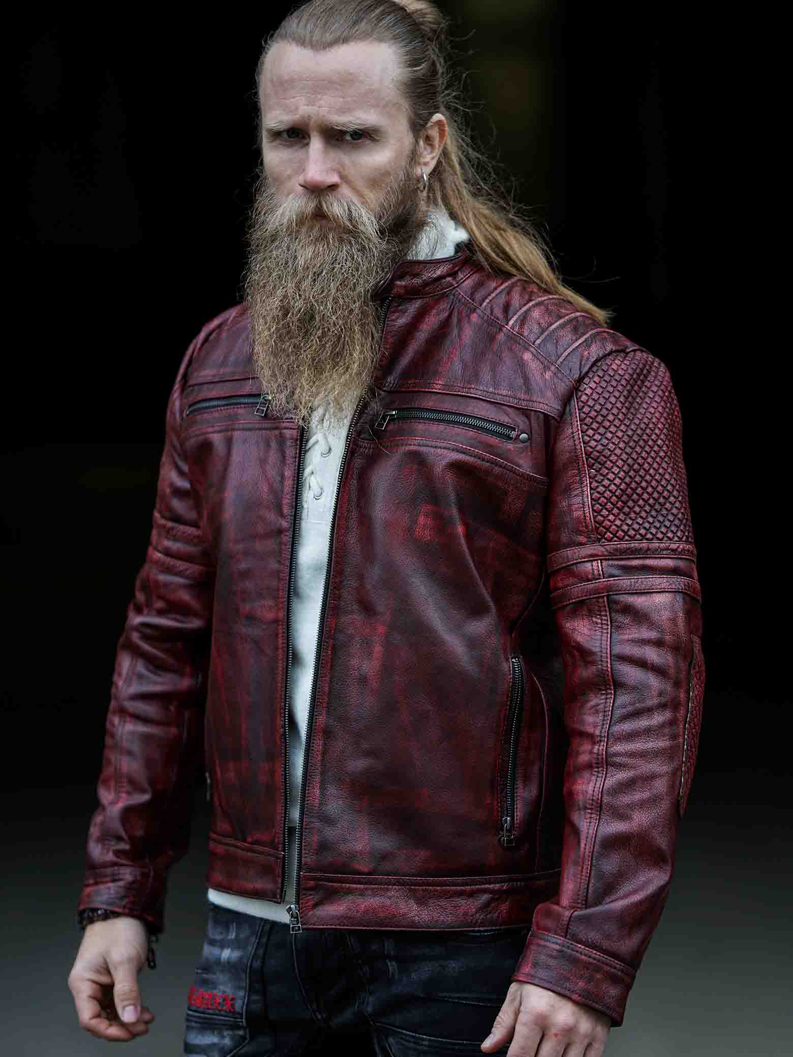 Kurtka Skórzana RD Iron Fury - Czerwona