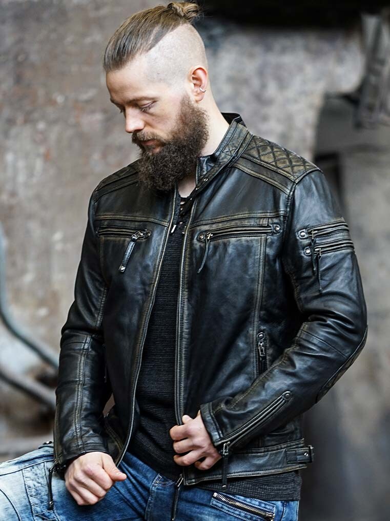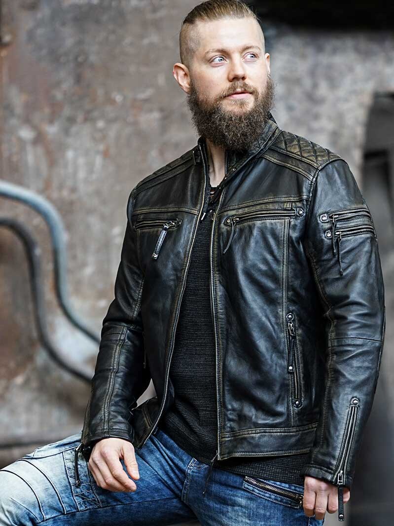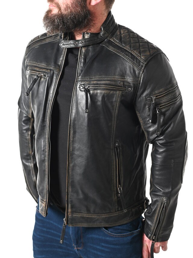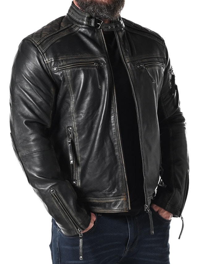 Kurtka z prawdziwej skóry o lekko zużytym wyglądzie, który daje całościowo ciekawy efekt. Posiada stylowe zamki i przeszycia oraz regulowane mankiety i pas. Dwie kieszenie wewnętrzne i cztery zamykane kieszenie z przodu. Ta kurtka jest produkowana wyłącznie dla RockDenim i znajdziesz ją tylko u nas!