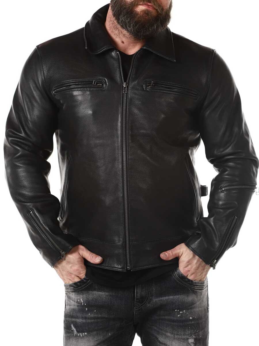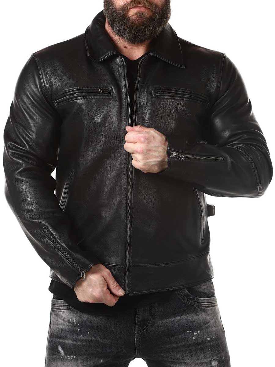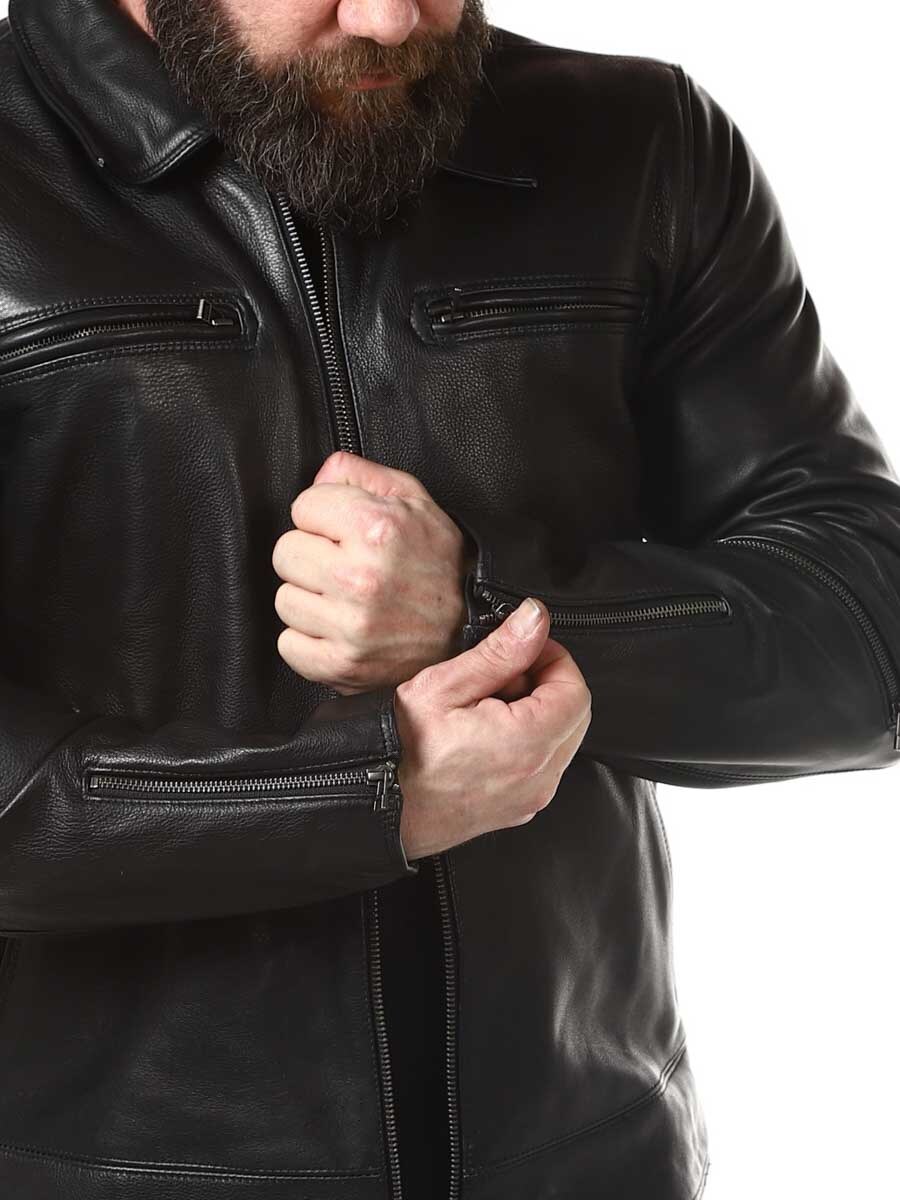 Mocna i ciężka kurtka z prawdziwej skóry. Zaprojektowane z kołnierzem oraz regulowaną talią i mankietami. Cztery kieszenie z przodu, jedna kieszeń na ramieniu i dwie kieszenie wewnętrzne. Idealna dla tych, którzy chcą ponadczasowej kurtki w dobrej jakości!