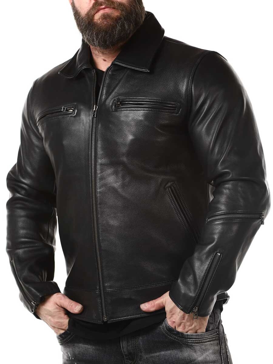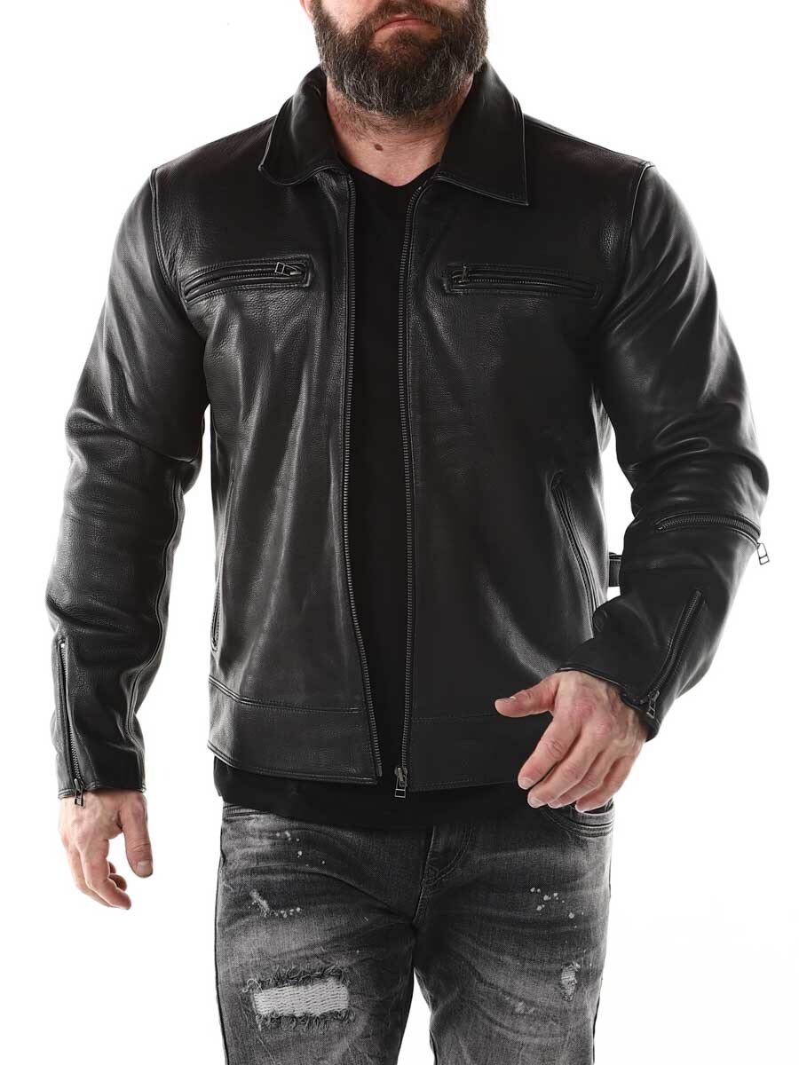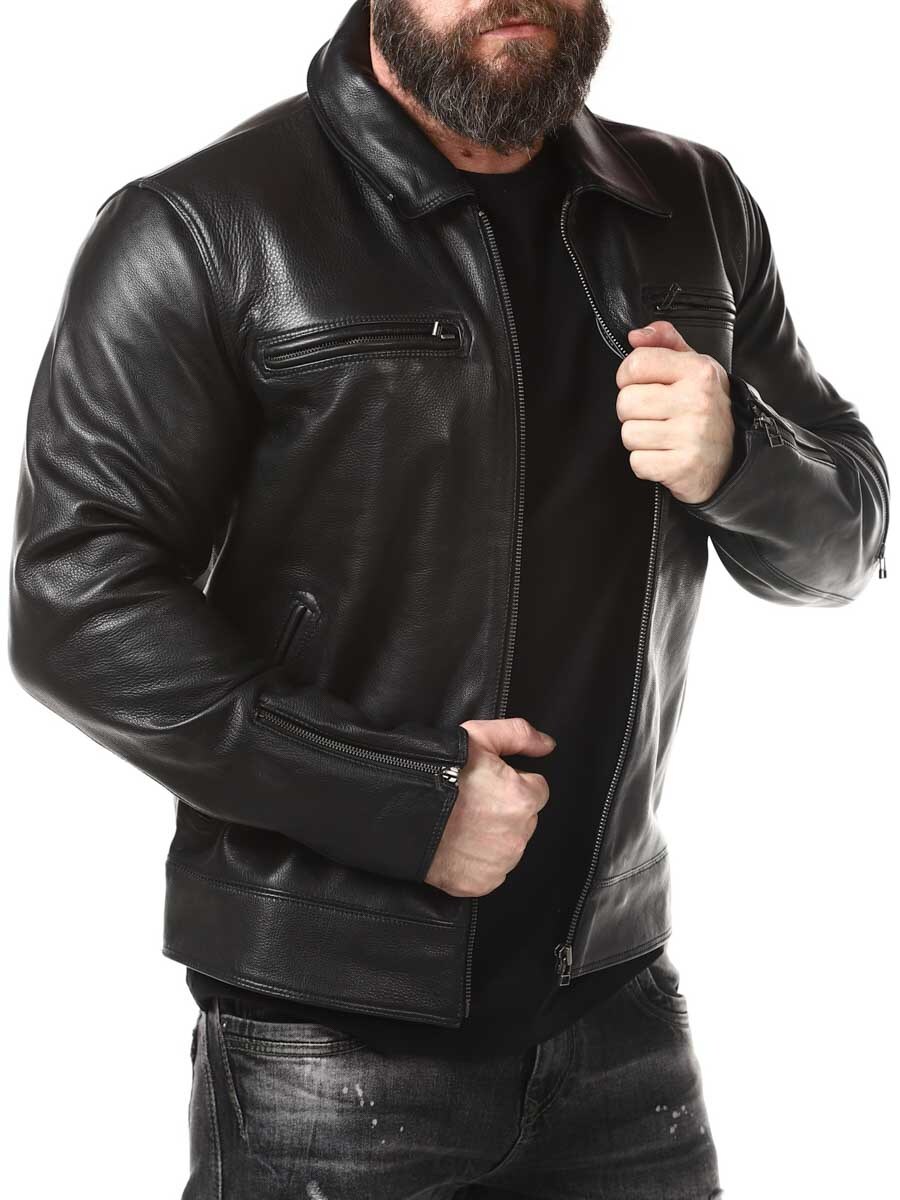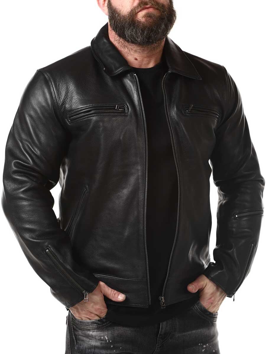 Mocna i ciężka kurtka z prawdziwej skóry. Zaprojektowane z kołnierzem oraz regulowaną talią i mankietami. Cztery kieszenie z przodu, jedna kieszeń na ramieniu i dwie kieszenie wewnętrzne. Idealna dla tych, którzy chcą ponadczasowej kurtki w dobrej jakości!