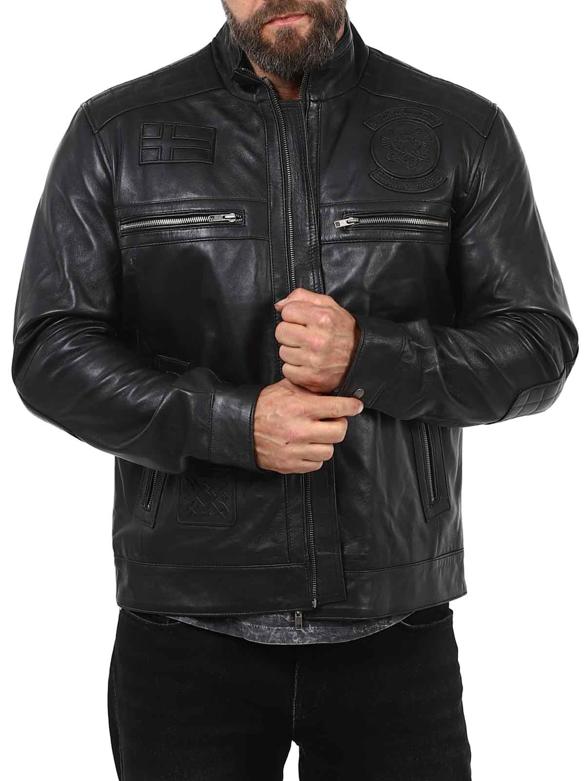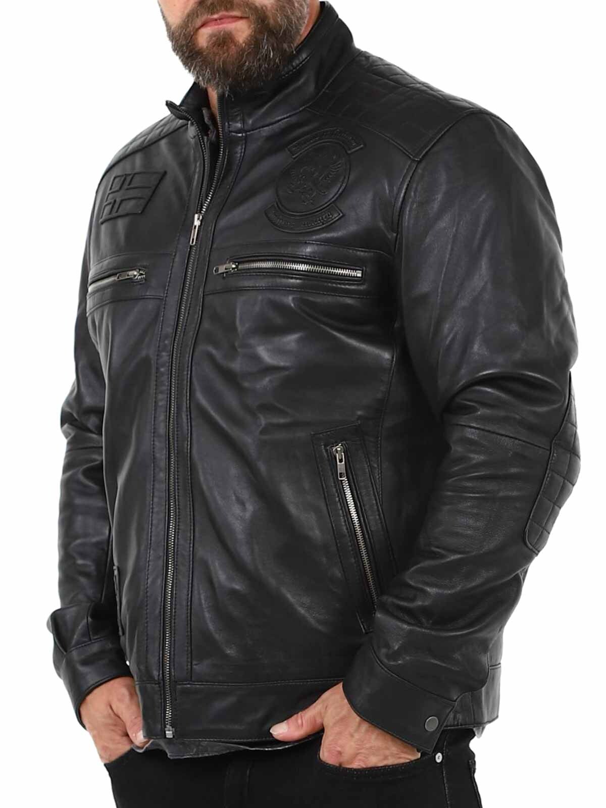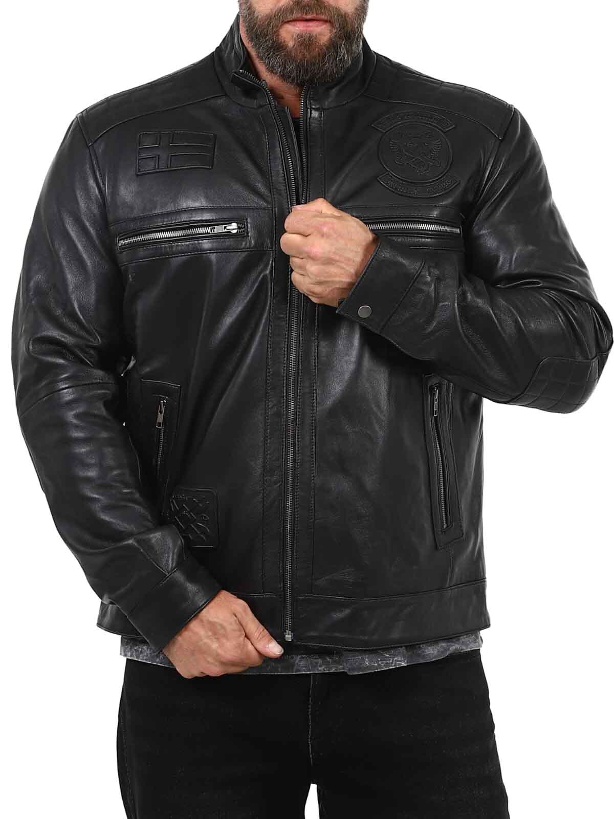 Ta elegancka i wytrzymała skórzana kurtka jest wykonana z prawdziwej owczej skóry, oferując miękkość i elastyczność przy zachowaniu trwałej jakości. Posiada ostrą stójkę, haftowane detale i wiele praktycznych kieszeni zapinanych na zamek błyskawiczny, które zapewniają zarówno funkcjonalność, jak i styl. Idealny dla tych, którzy chcą nowoczesnego, męskiego wyglądu!