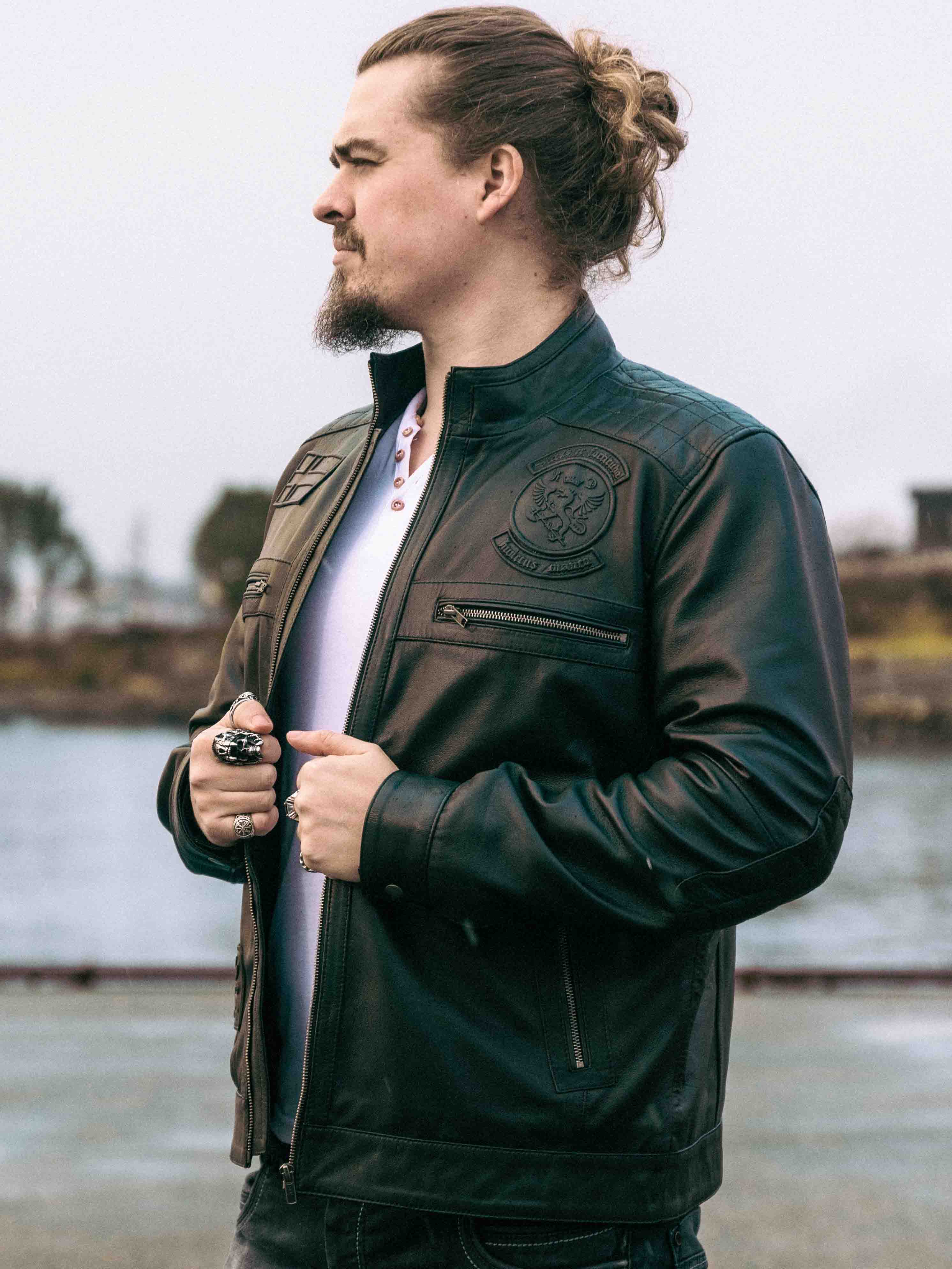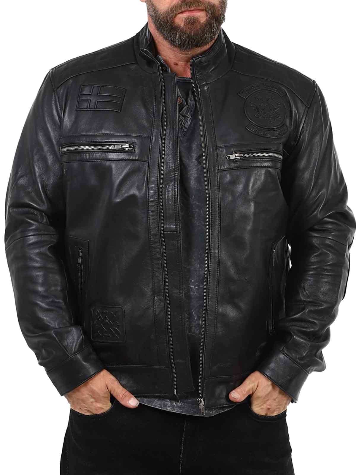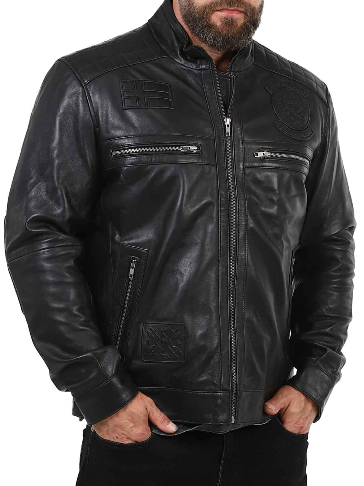 Ta elegancka i wytrzymała skórzana kurtka jest wykonana z prawdziwej owczej skóry, oferując miękkość i elastyczność przy zachowaniu trwałej jakości. Posiada ostrą stójkę, haftowane detale i wiele praktycznych kieszeni zapinanych na zamek błyskawiczny, które zapewniają zarówno funkcjonalność, jak i styl. Idealny dla tych, którzy chcą nowoczesnego, męskiego wyglądu!