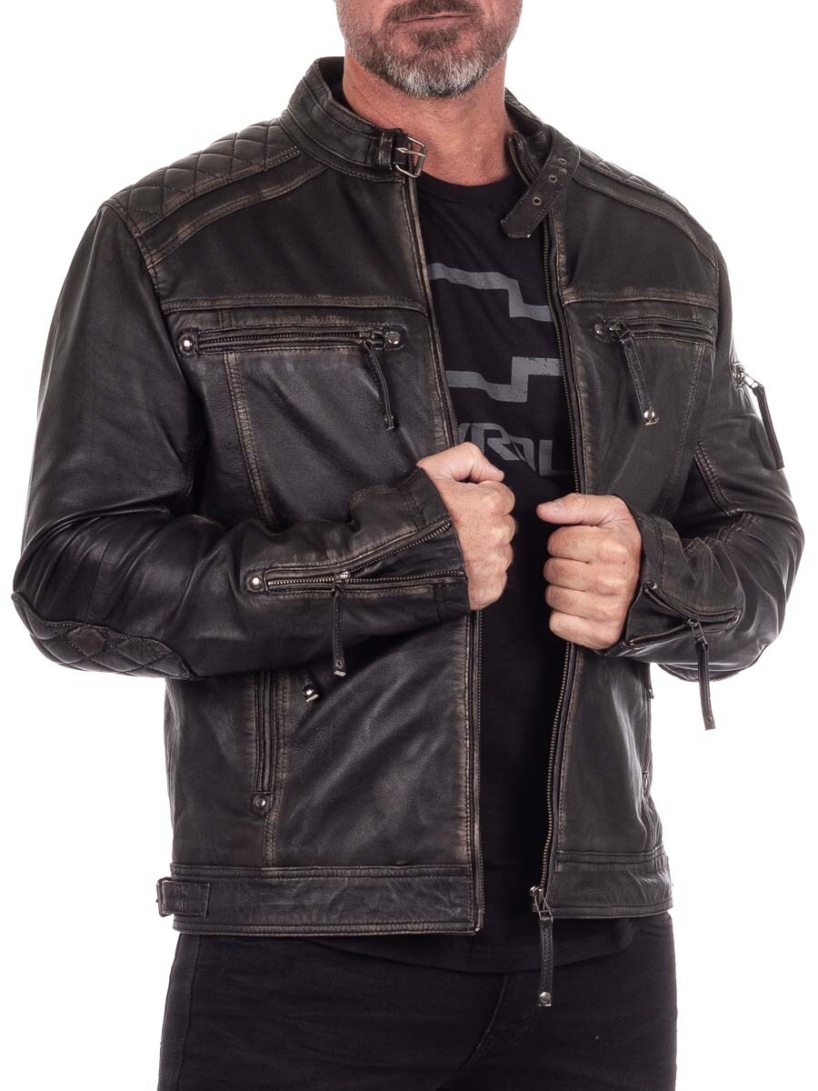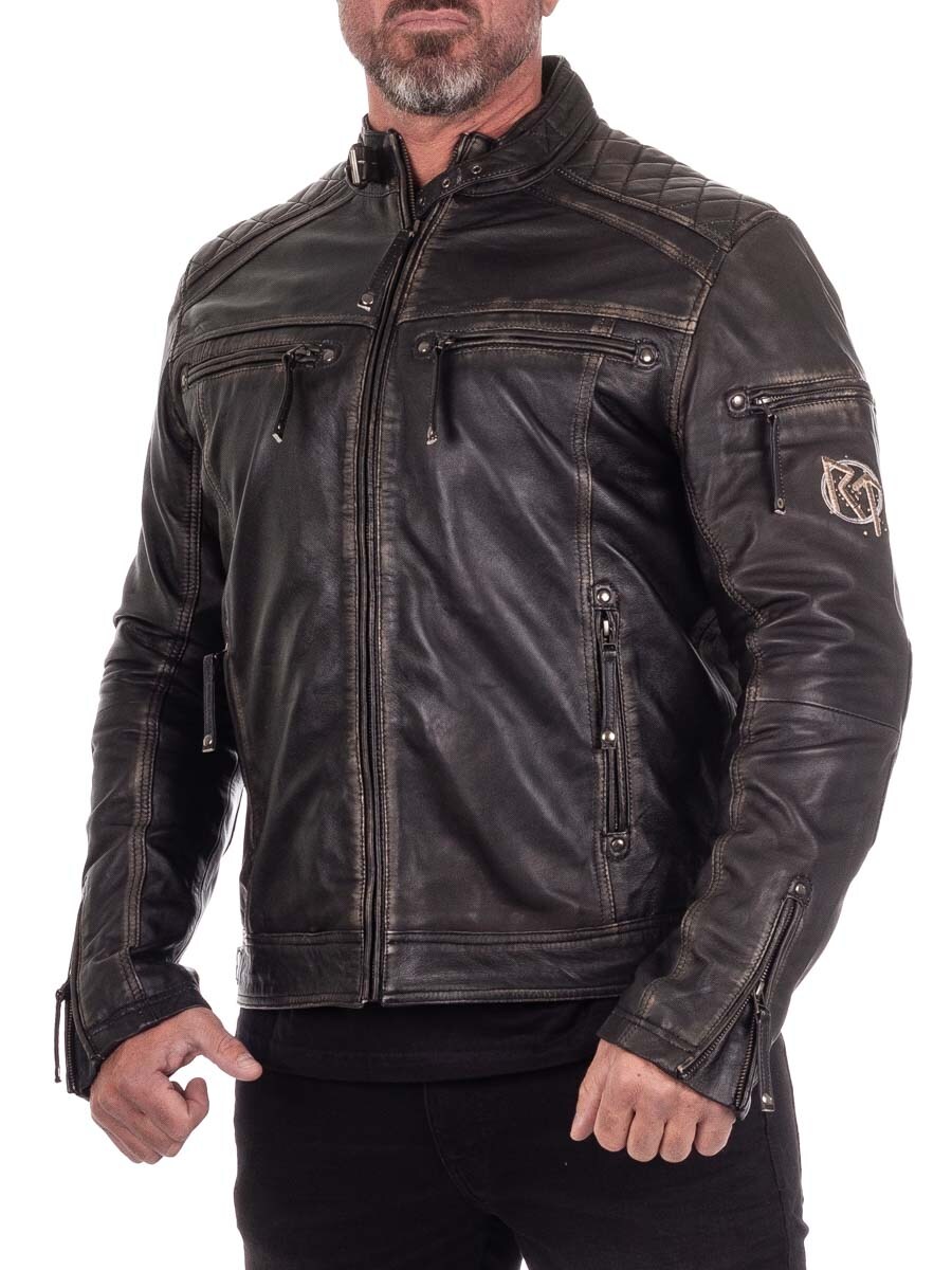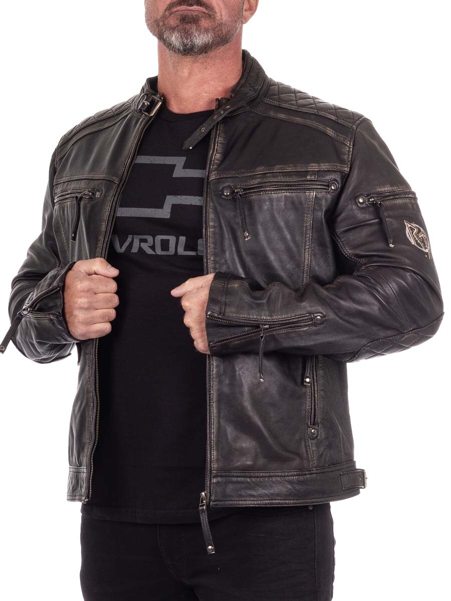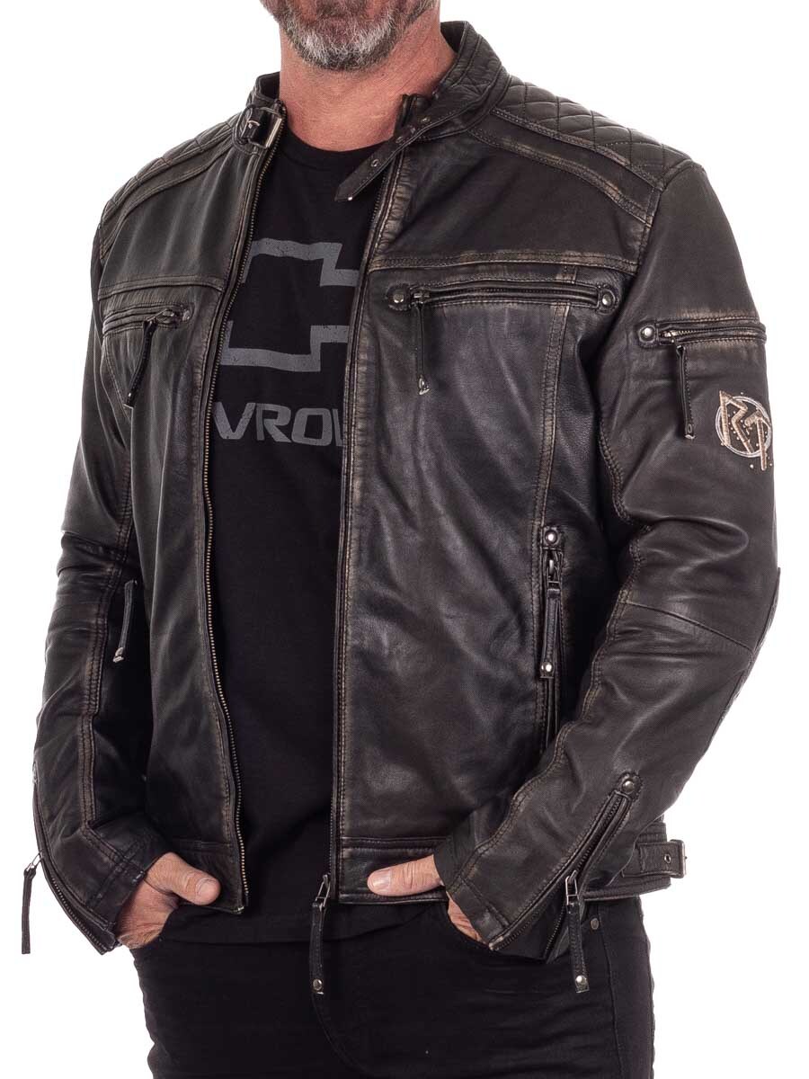 Solidna kurtka z naturalnej skóry o postarzanym, vintage wyglądzie z haftowanymi motywami wikingów, które nadają jej wyjątkowego charakteru. Zaprojektowana z pikowanymi wstawkami, regulowanymi mankietami i ściągaczem dla idealnego dopasowania. Cztery zapinane kieszenie z przodu i dwie praktyczne wewnętrzne. Ta kurtka została stworzona ekskluzywnie dla naszych klientów i jest dostępna tylko w RockDenim!