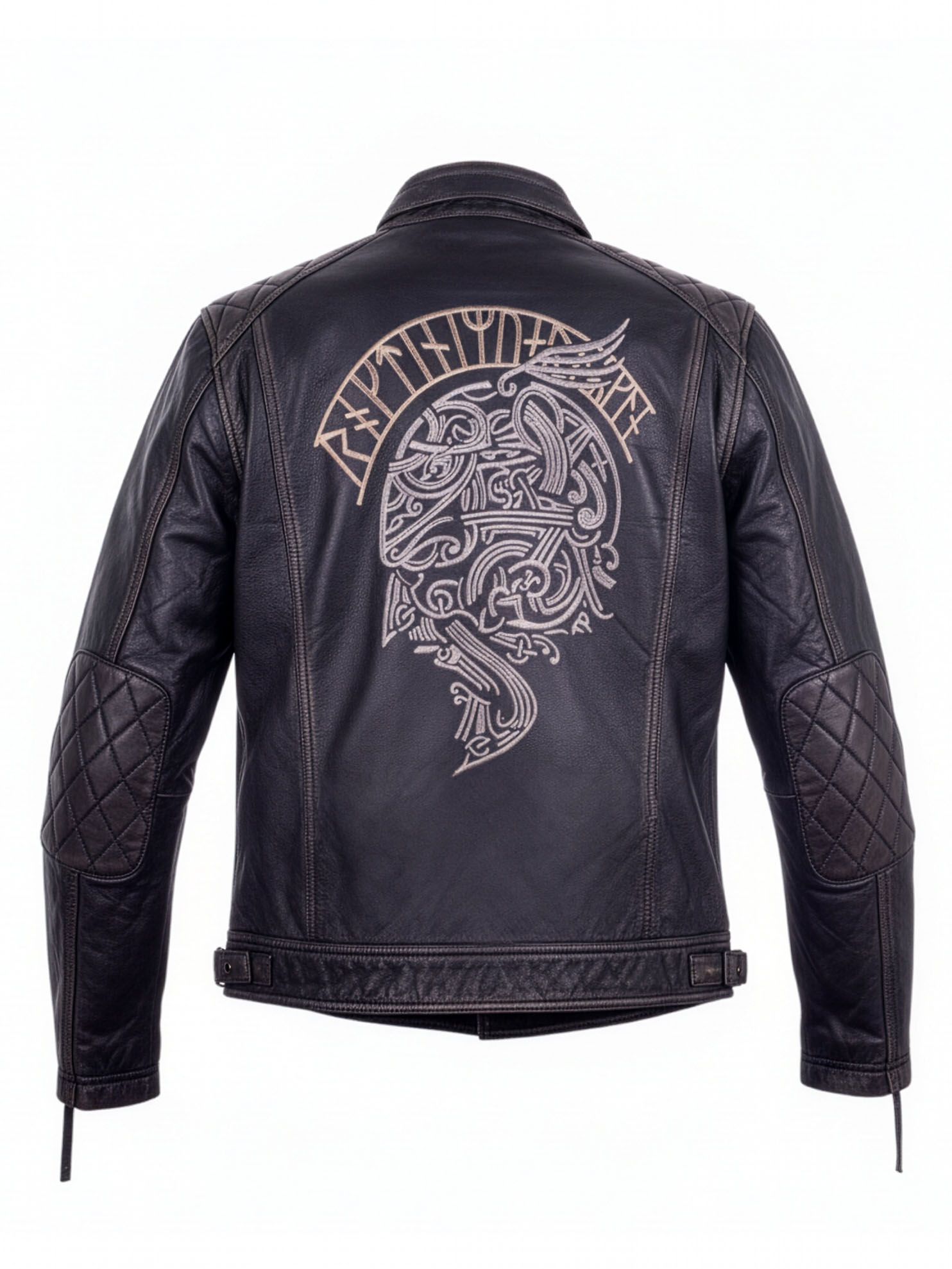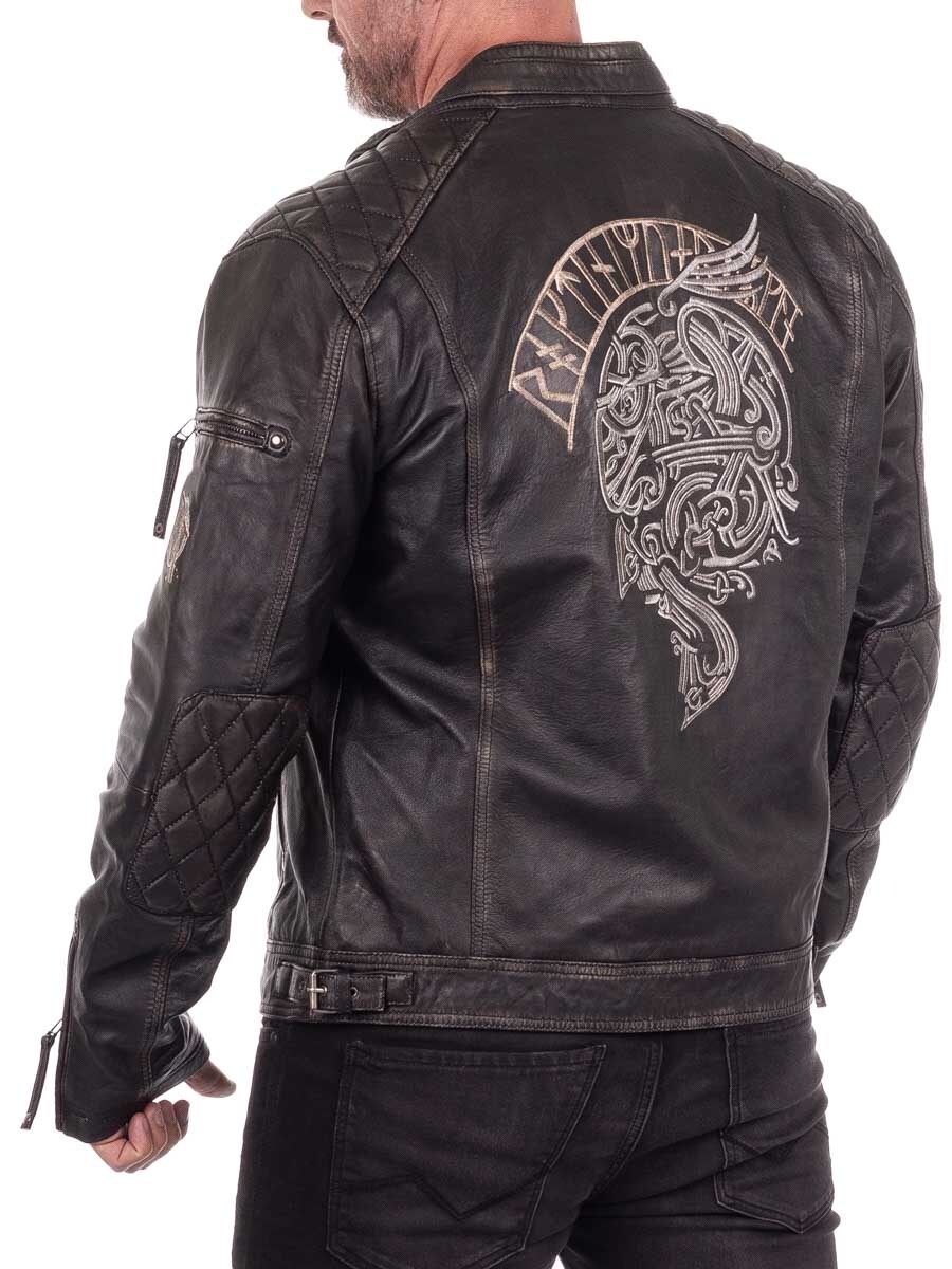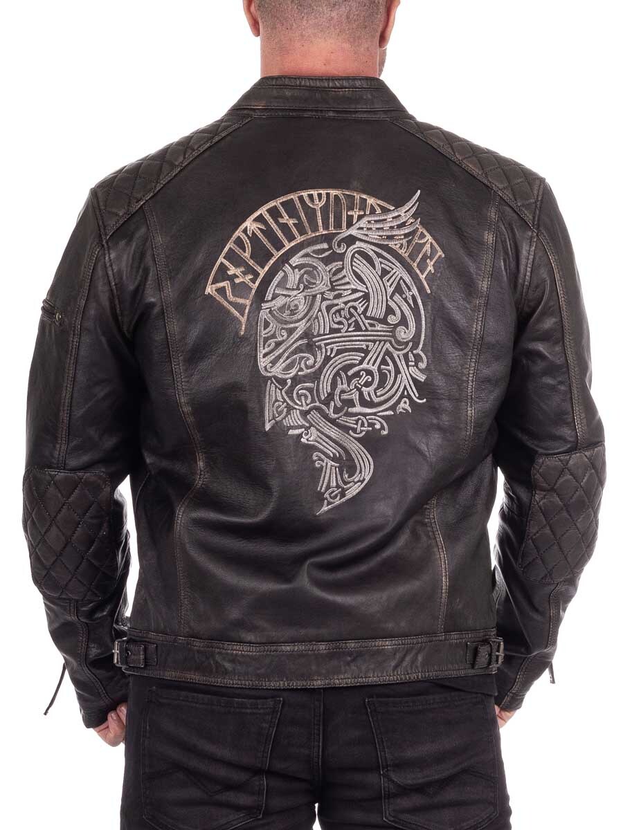 Skórzana kurtka z wikingowymi haftami – RD Ancestors Viking Collection