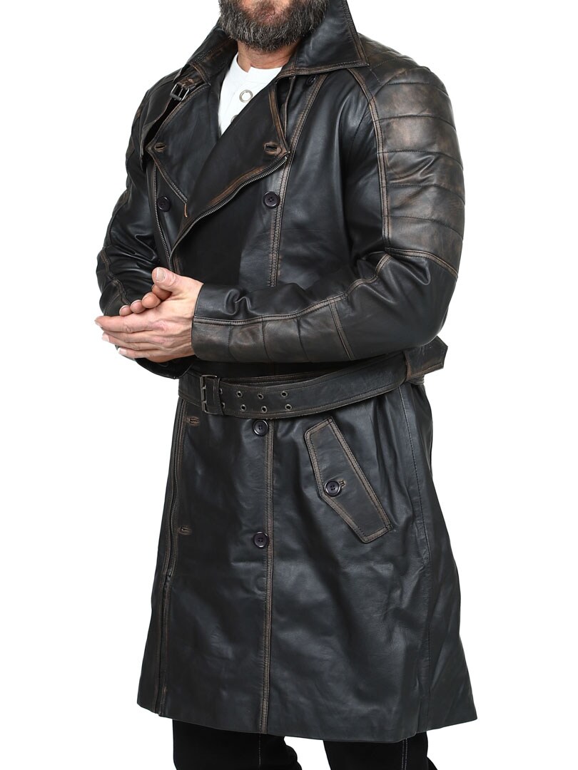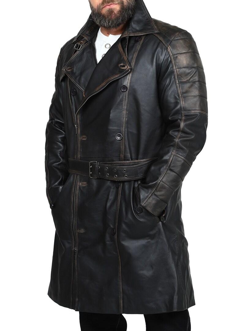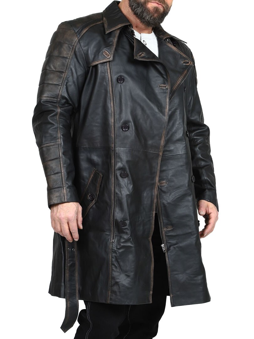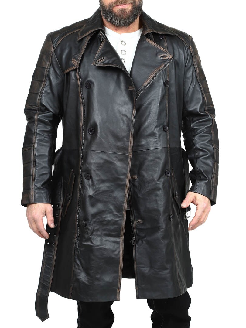 Dwurzędowy płaszcz o klasycznym, długim kroju i wyglądzie vintage. Wykonany z wysokiej jakości elastycznej skóry zapewniającej trwałość i ekskluzywny wygląd. Zamykane kieszenie boczne i kieszenie wewnętrzne do bezpiecznego przechowywania. Ta stylowa kurtka to idealny wybór dla tych, którzy szukają czegoś wyjątkowego i stylowego!