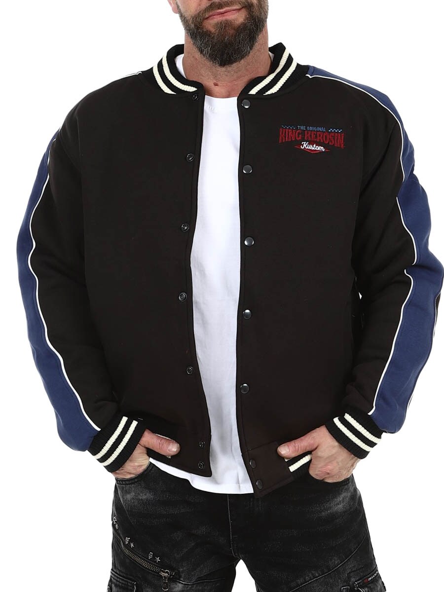 Czarna kurtka zaprojektowana z haftowanym nadrukiem z przodu i z tyłu. Posiada kołnierz, dwie otwarte kieszenie oraz ściągacze przy wykończeniach. Wewnątrz kurtka jest wyściełana pikowaną, ocieplaną podszewką, która zapewnia dodatkowe ciepło i komfort, dzięki czemu idealnie sprawdzi się również w chłodniejsze dni.