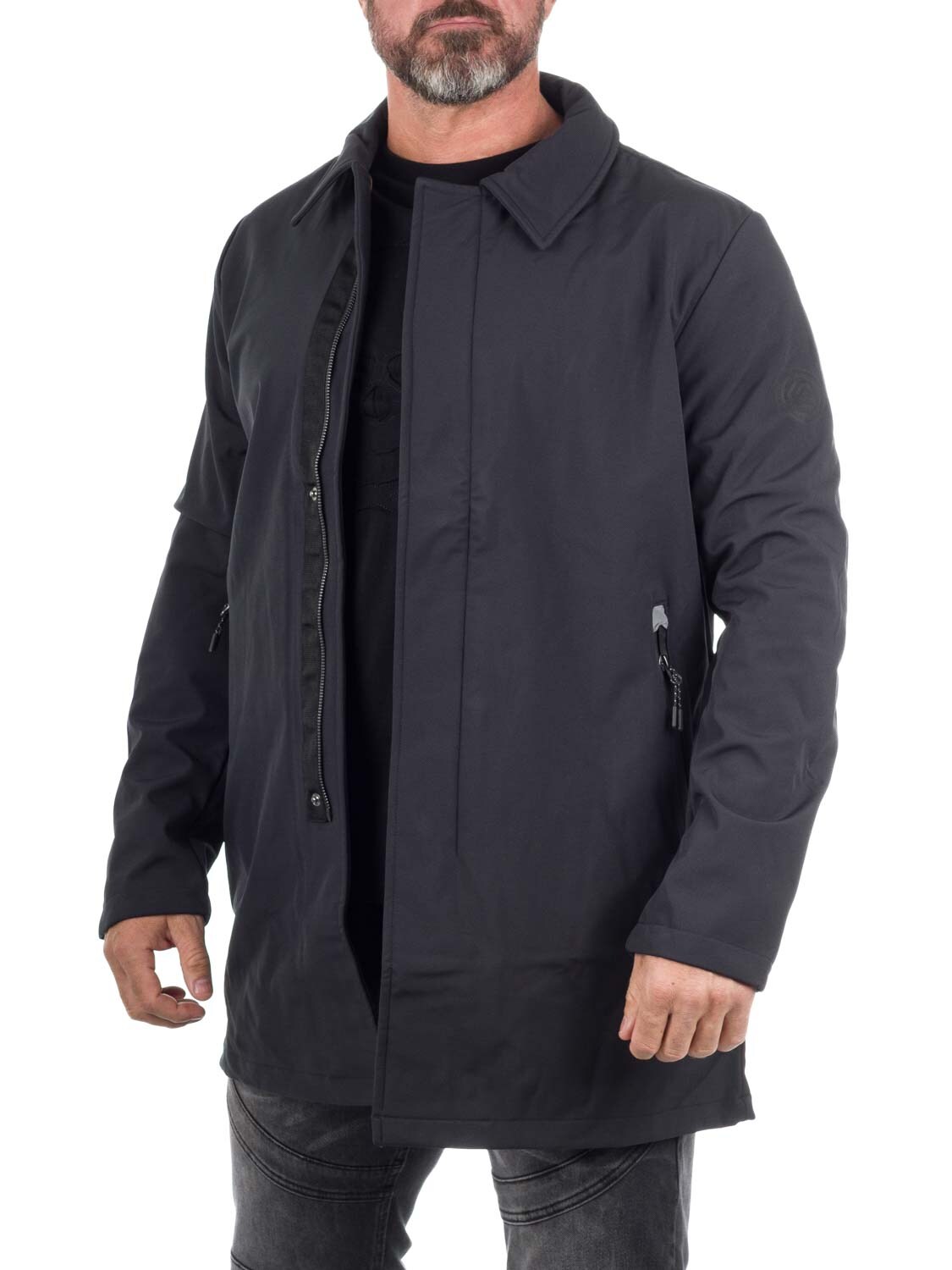 Prosty i stylowy płaszcz wykonany z wiatroszczelnego, lekko wodoodpornego materiału, z wewnętrzną podszewką z polaru. Wyposażony w dwie przednie kieszenie zapinane na zamek. Płaszcz dla mężczyzny, który chce wyglądać stylowo wiosną i jesienią!