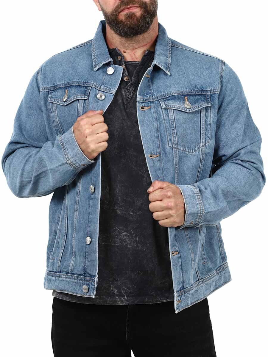 Ponadczasowa kurtka jeansowa, która jest niezbędna w każdej garderobie. Posiada kołnierz, dwie zamykane kieszenie na piersi oraz dwie otwarte kieszenie z przodu. Kurtka zapinana na guziki.
