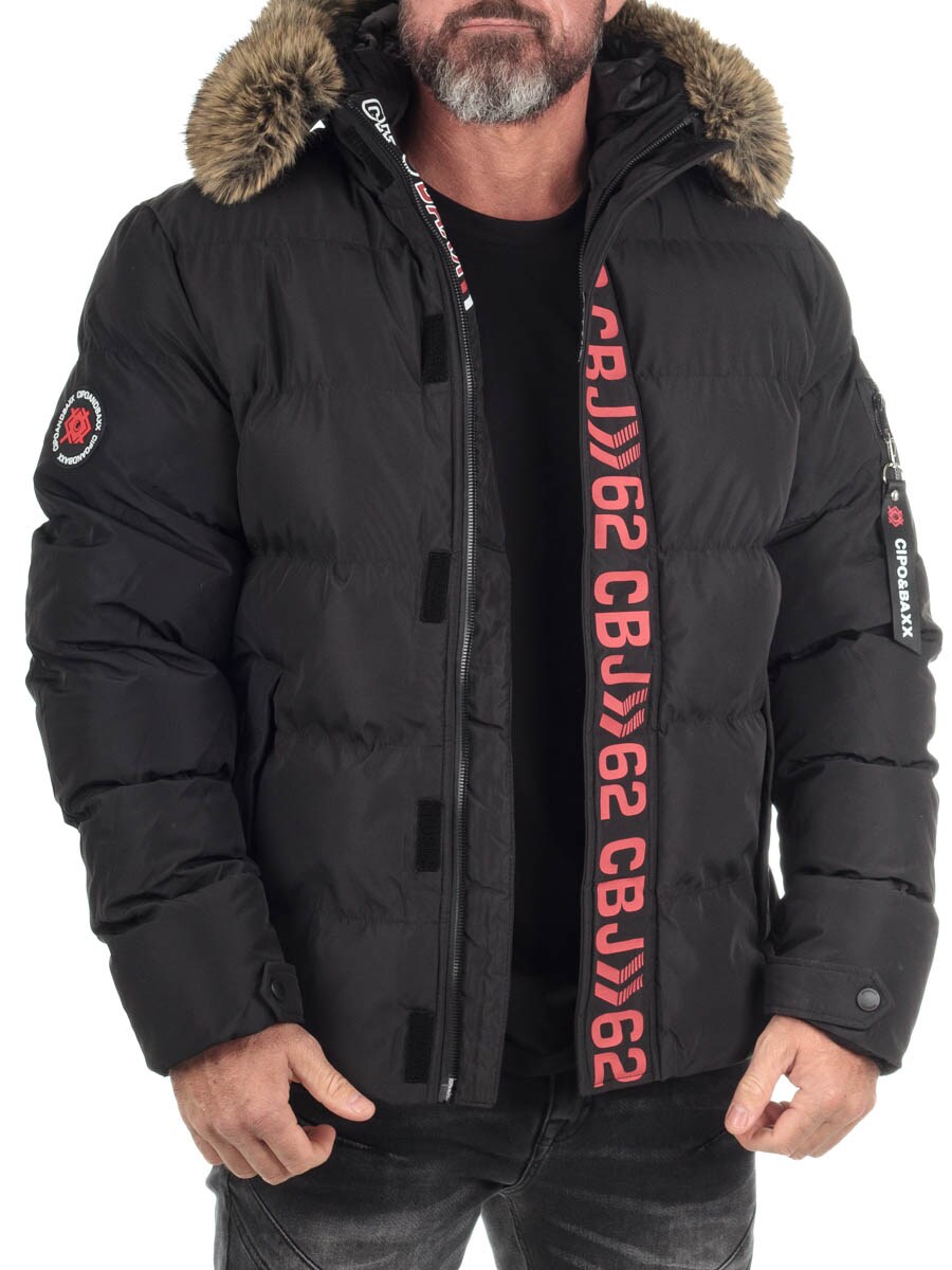 Ta ciepła męska kurtka od Cipo & Baxx to idealny wybór na chłodne dni i wyraziste stylizacje dzięki swojej izolującej podszewce i rzucającemu się w oczy napisie CIPO & BAXX wzdłuż przedniego zamka błyskawicznego. Kurtka posiada praktyczny kaptur ze sztucznym futrem, który zapewnia dodatkową ochronę przed wiatrem i zimnem, a sportowy design w klasycznej czerni z efektownym czerwonym logo z przodu nadaje nowoczesny, wyrazisty wygląd. Dzięki wytrzymałemu, odpornemu na warunki atmosferyczne materiałowi zewnętrznemu, bocznym kieszeniom i elastycznym mankietom, jest to odzież, która łączy w sobie zarówno komfort, jak i najnowsze trendy streetwear. Unikalne pionowe oznakowanie sprawia, że ta kurtka puchowa natychmiast wyróżnia się z tłumu.