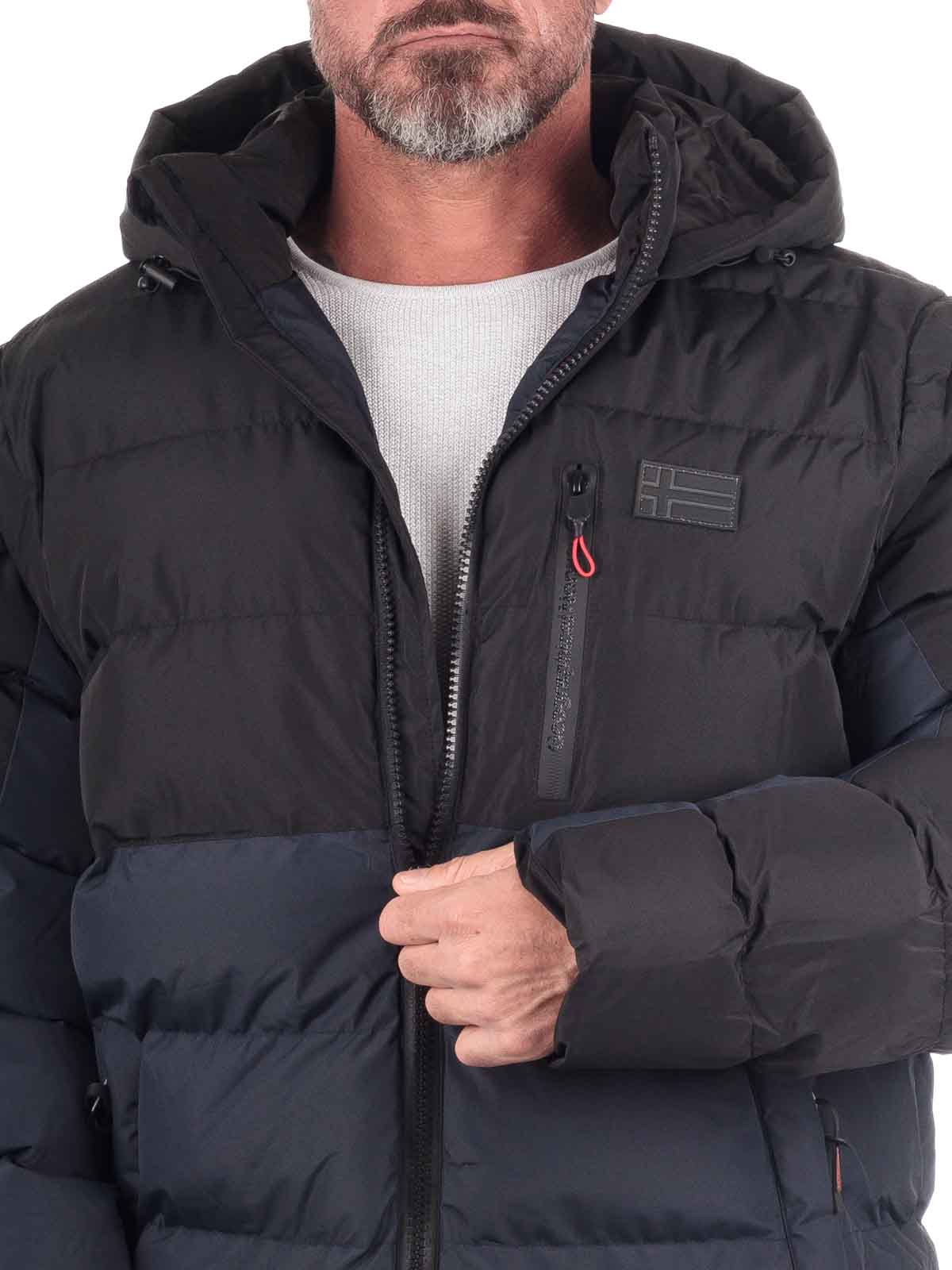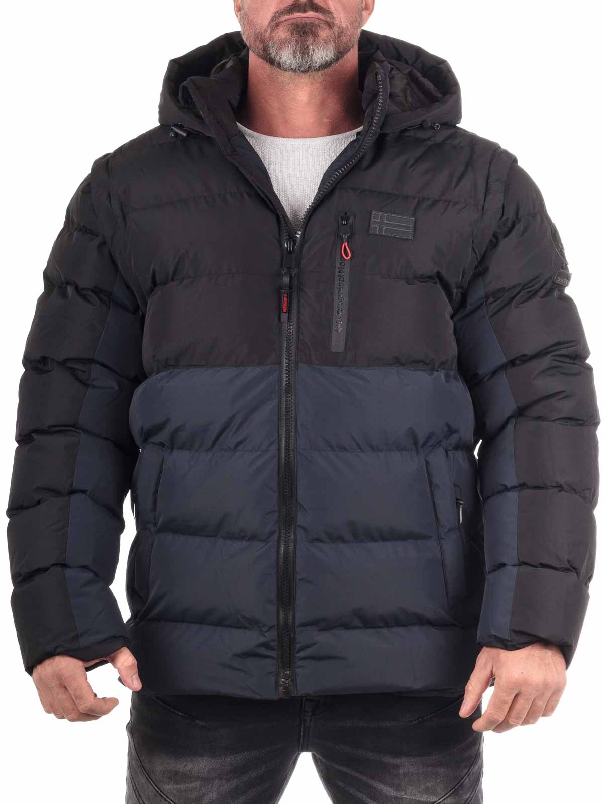 Stylowa kurtka puchowa w dwukolorowym wzorze z matowym wykończeniem. Rękawy można łatwo odpiąć, przekształcając kurtkę w kamizelkę – idealne rozwiązanie na zmienną pogodę i różne pory roku. Wykonana z wytrzymałego materiału z solidnym ociepleniem, które zapewnia ciepło bez uczucia ciężkości. Liczne kieszenie na zamek oraz regulowany kaptur dodają funkcjonalności i charakteru. Uniwersalny faworyt łączący komfort, styl i elastyczność.