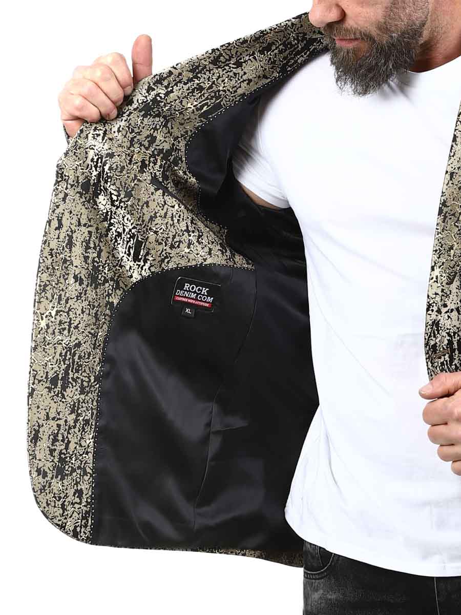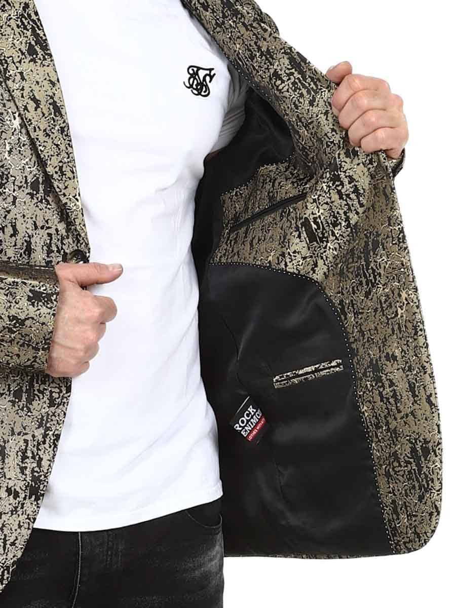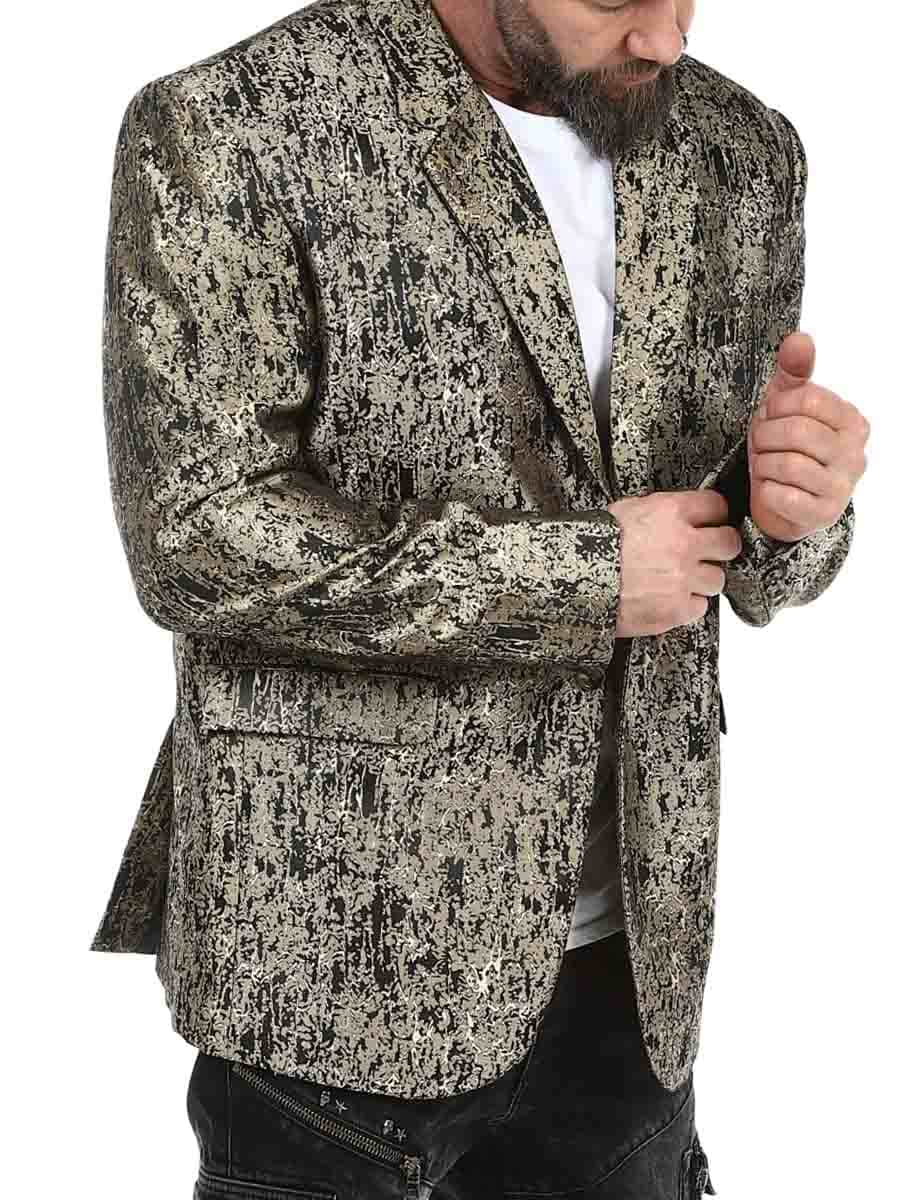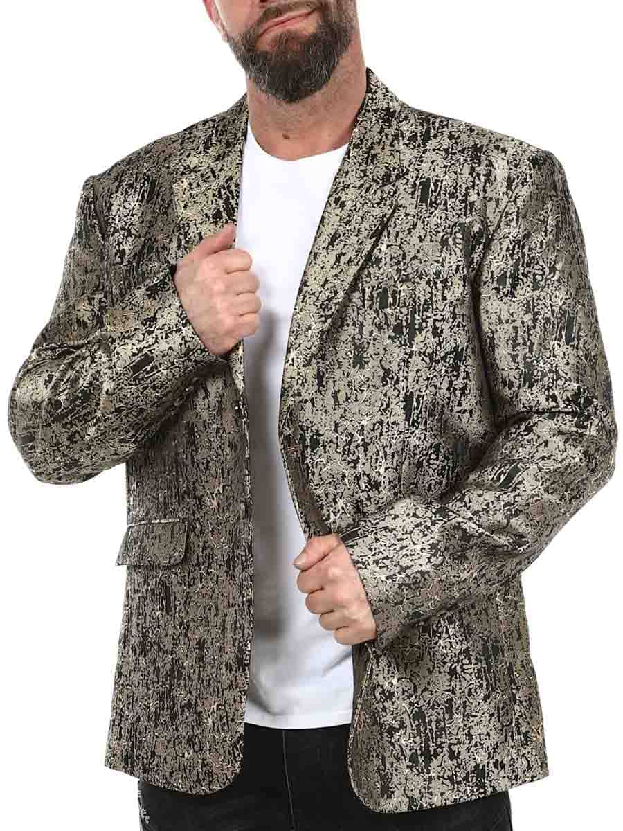 Ta marynarka łączy ekskluzywny, teksturowany wzór z nowoczesnym krojem, tworząc wyrazisty i elegancki efekt. Delikatnie połyskujący materiał oraz wyraźna struktura nadają całości luksusowego charakteru – idealna, gdy chcesz wynieść swoją stylizację na wyższy poziom. Posiada dwie kieszenie z przodu oraz kieszeń na piersi. Można ją nosić zarówno na prosty t-shirt, jak i na koszulę. Marynarka dla tych, którzy lubią się wyróżniać i cenią detale, które naprawdę robią różnicę!