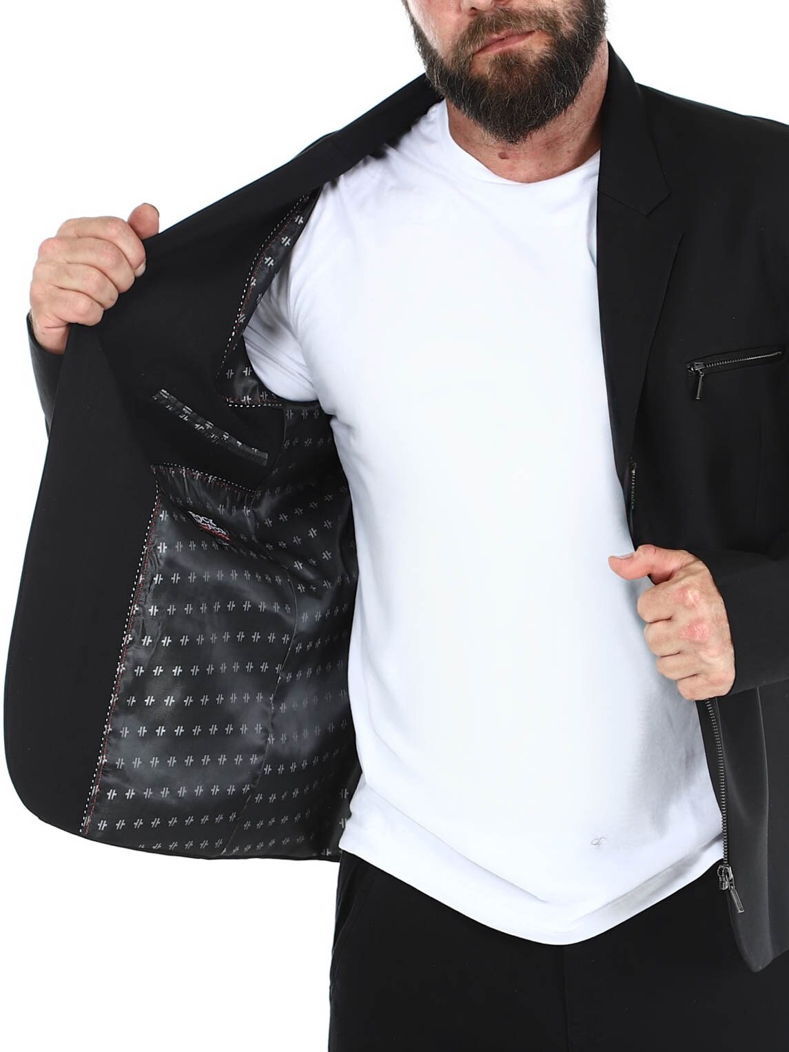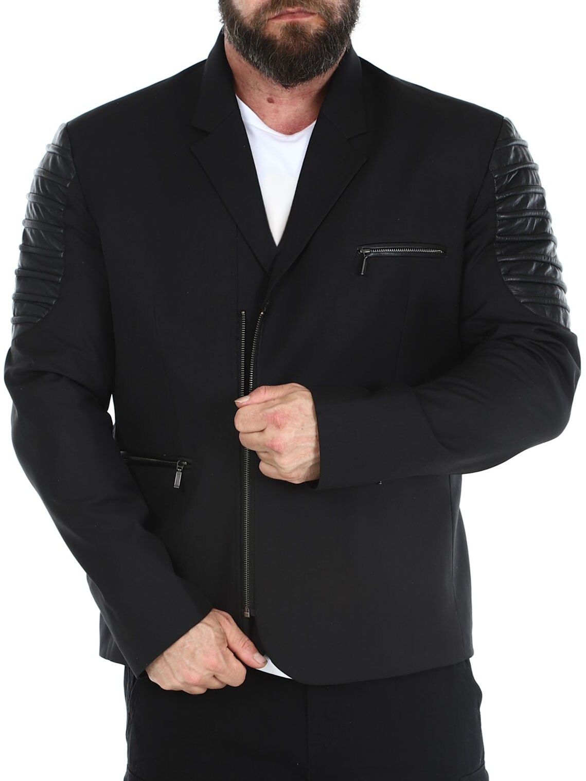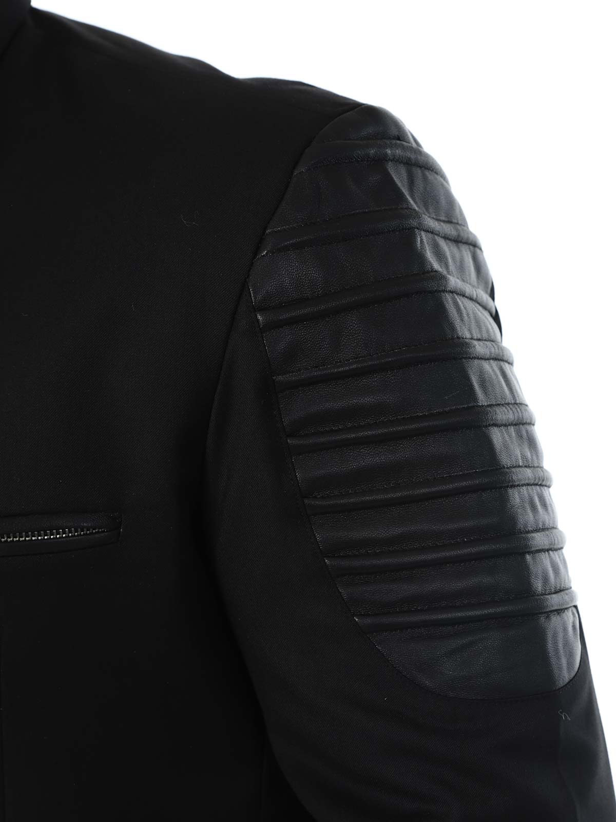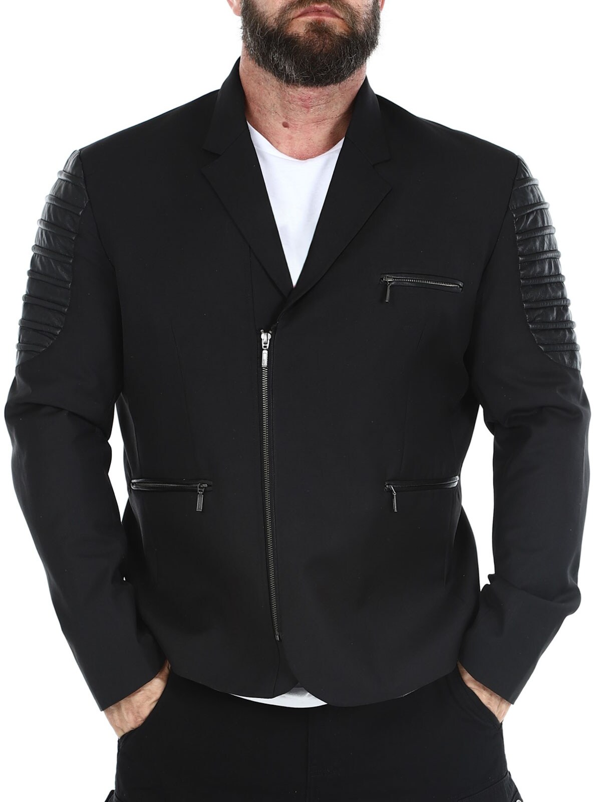 Bawełniana marynarka zapinana na zamek błyskawiczny i detalami z imitacji skóry. Posiada trzy przednie kieszenie zapinane na zamek oraz trzy otwarte kieszenie wewnętrzne. Marynarka dostępna tylko w RockDenim!
