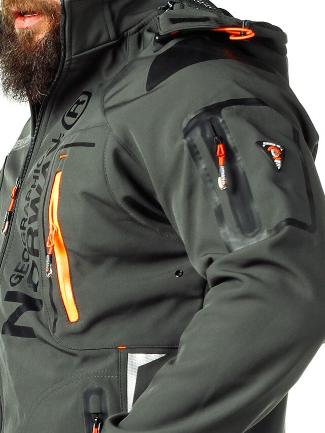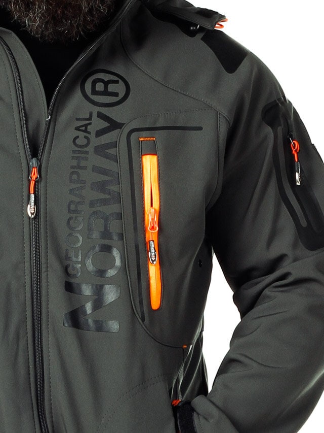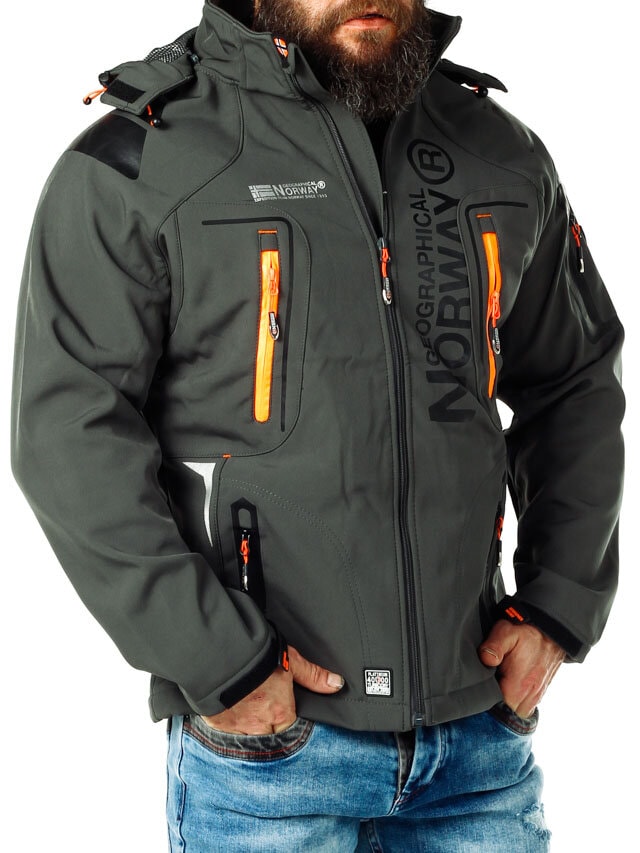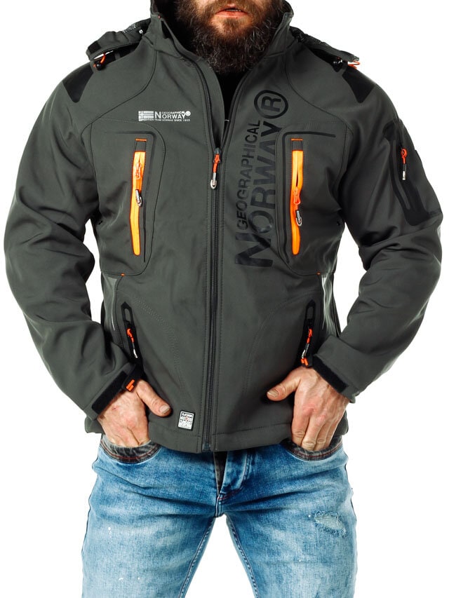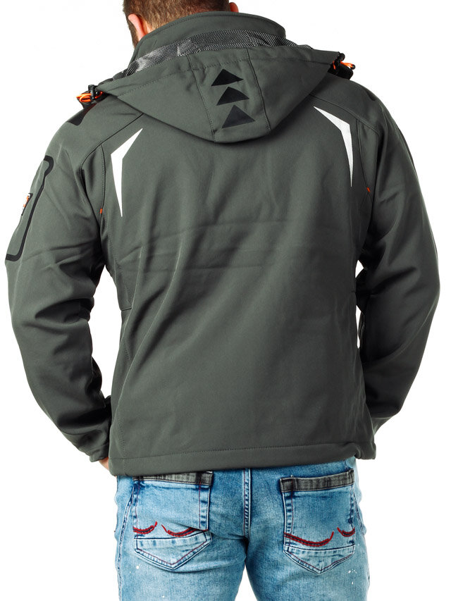 Funkcjonalna kurtka softshellowa z klejonymi szwami odpowiednio przygotowana na skandynawskie zimno i wiatr. Kurtka posiada odpowiednią oddychalność, a kaptur można regulować i zdejmować. Liczne kieszenie pomieszczą wymagany sprzęt. Kurtka w szarym kolorze posiada efektowne logo z przodu, a jaskrawe akcenty i odblaski podkreślają jej przygodowy charakter. Końce rękawów i pas są regulowane.