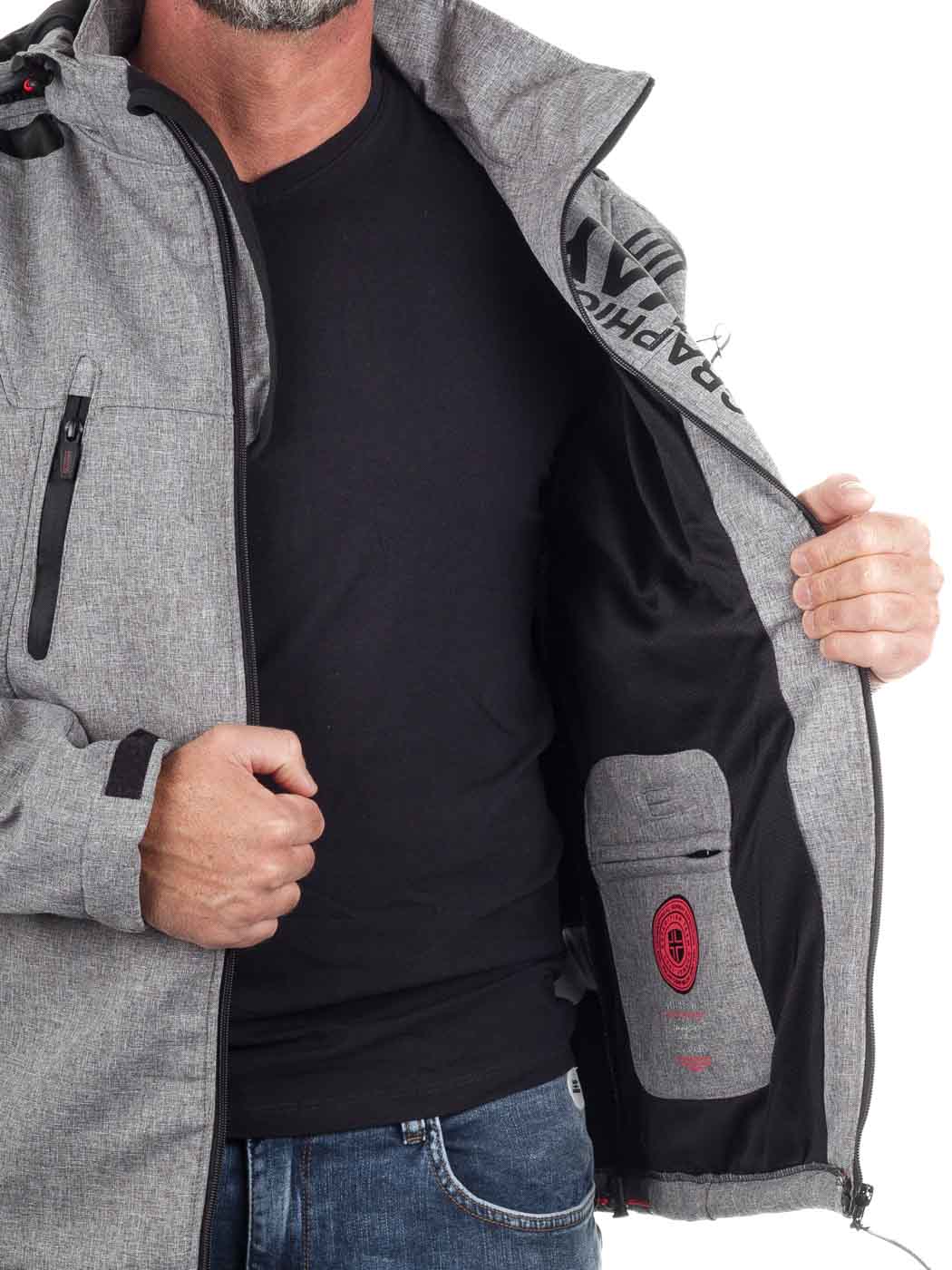 Funkcjonalna i sportowa kurtka softshellowa zaprojektowana z myślą o komforcie i stylu. Posiada wiatroszczelną i wodoodporną powłokę oraz miękką polarową podszewkę, która zapewnia ciepło w chłodne dni. Kilka praktycznych kieszeni na zamek, regulowany kaptur oraz szczegółowe nadruki z logo nadają nowoczesny charakter.