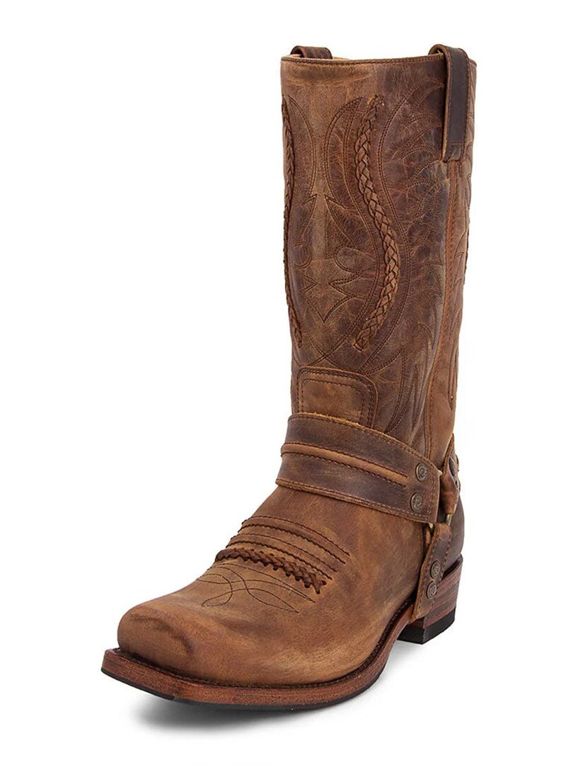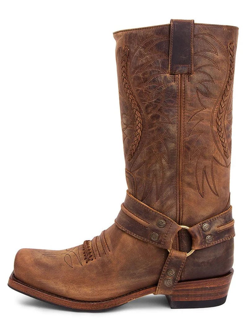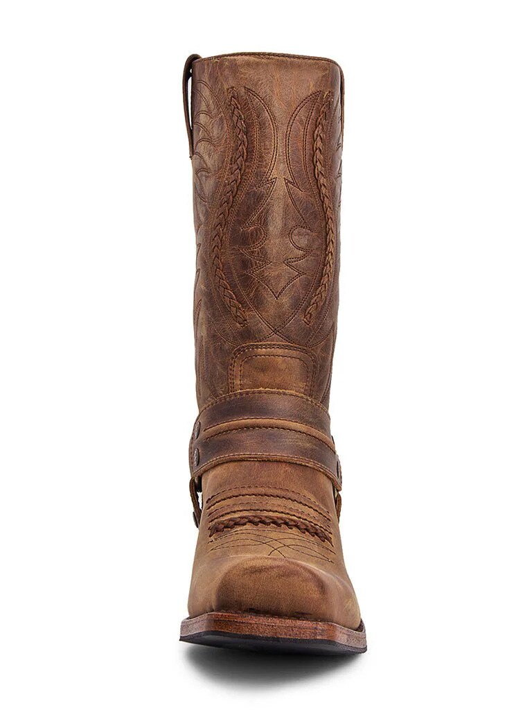 Solidne botki wykonane z olejowanej brązowej skóry o pięknie postarzałym wyglądzie. Ozdobione haftami, które nadają im klasyczny westernowy charakter. Kwadratowy nosek, półkubanki obcas oraz trwała skórzana podeszwa z gumową warstwą zapewniają komfort i stabilność. Wykonane w tradycyjnej konstrukcji Goodyear-welt – znaku najwyższej jakości gwarantującego długą żywotność i stabilność kształtu. Dla osób ceniących autentyczne rzemiosło i ponadczasowy styl western!