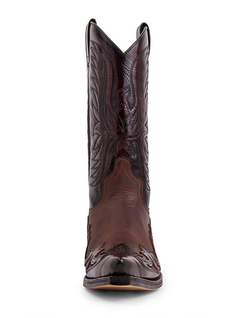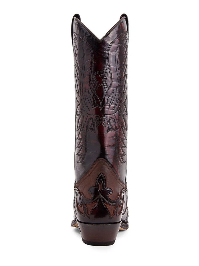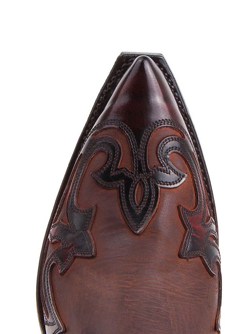Model Cuervo Flora od Sendra Boots to esencja kowbojskiego stylu z hiszpańskim rzemiosłem w tle. Wykonane ręcznie z najwyższej jakości skóry naturalnej, buty te zachwycają głębokim, bordowo-brązowym kolorem i bogatym haftem w stylu western. Spiczasty nosek, ozdobne detale i charakterystyczny obcas „cuervo” sprawiają, że to idealny wybór dla fanów klasyki z nutą nowoczesnej elegancji.