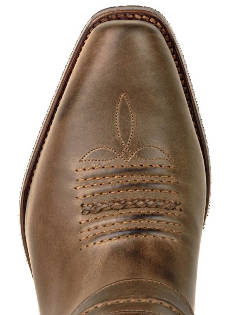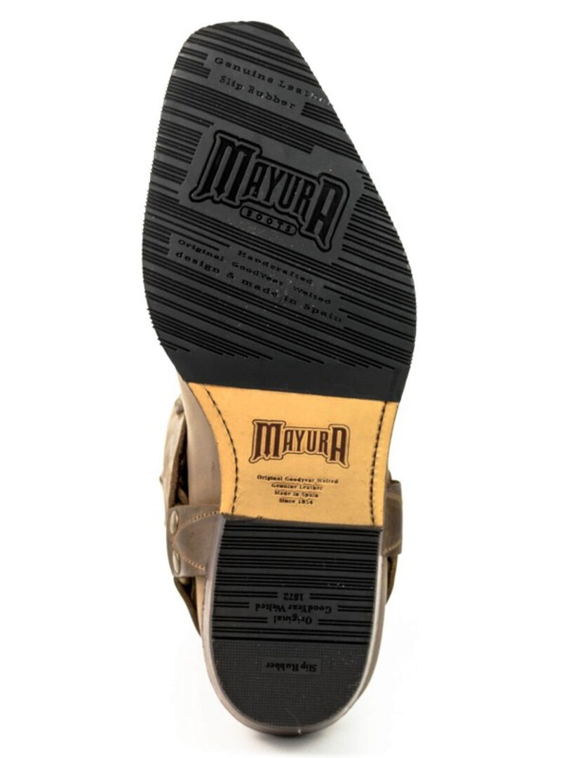 Kowbojki Mayura 07 w kolorze Crazy Old Sadale to ręcznie robione buty motocyklowe z grubej, woskowanej skóry cielęcej, z klasyczną konstrukcją Goodyear.